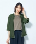 nunu*(nissen本店)のノーカラージャケット「大きいサイズ ノーカラーシアージャケット」を使ったコーディネート