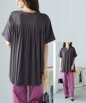 nunu*(nissen本店)のチュニック「大きいサイズ 汗染みしにくい後ろプリーツデザインチュニック(UVカット・抗菌防臭・接触冷感)」を使ったコーディネート