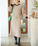 nunu*(nissen本店)のTシャツ/カットソー「大きいサイズ 配色使いプルオーバー+タイトスカート【セットアップ】」を使ったコーディネート