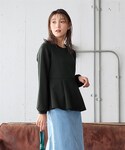 nunu*(nissen本店)のTシャツ/カットソー「大きいサイズ ダンボールニットペプラムプルオーバー」を使ったコーディネート
