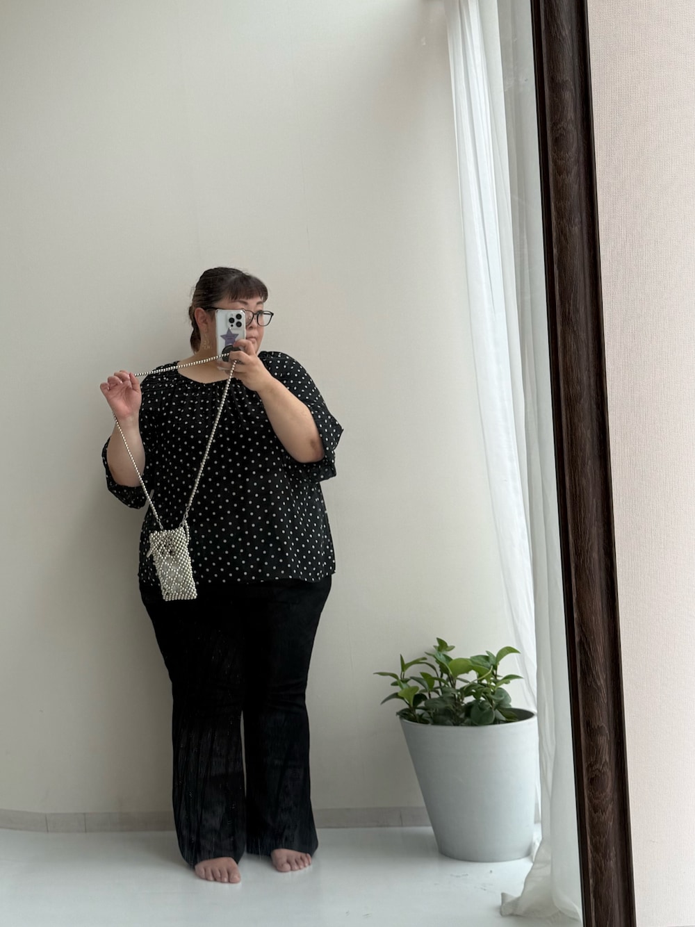 ここ数年ドットが大好き過ぎて 私のラックには大小様々なドットがいます。 可愛いBOOMど真ん中なブラウス(๑♡∀♡๑) きましたー!(*゚▽゚ノノ゙☆パチパチ☆♪ 当分残暑厳しいからこれくらいがちょうどいい! 身頃は裏地着いてるから安心です。 襟周りに入ったゴムが作るクシュクシュギャザーと 袖口のちょいポワンな感じが可愛い! オフショルもいけるみたいだし勇気があれば。笑 デコルテが綺麗な開きなので、 鎖骨探して見つかったら出すようにしときます。 ( ´゚Д゚`) あと 昨日オススメした赤いカーデと同じ ランダムテレコをつかった フレアシルエットの くびれパンツ( ºロº) めちゃくちゃ楽すぎ! ちゃんと膝のところで一旦くびれます! キラキラシルバーのビーズポーチをあわせて お出かけーᕦ( ᐛ )ᕡ おすすめです!