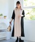 【トップス】 ・サイドのブラック切り替えが「影」のような役割を果たし、身幅をキュッとコンパクトに見せてくれます。 ・首元にさりげなく入ったV字のタックが、顔周りに抜け感を作ってスッキリとした印象に。 ・袖口はリブ仕様なので、腕まくりもしやすく、ぽわんとした袖のボリューム感が二の腕を可愛くカバーしてくれます。 【ボトムス】 ・すとんと落ちるストレートに近いシルエットで、体のラインを拾わずに縦長ラインを強調してくれます。 ・ふくらはぎが隠れる安心の丈感なので、足元を選ばずバランスが取りやすいのが魅力です。 ・柔らかい素材感ながら、ハリもあるので肉感を拾わず、一日中綺麗なシルエットを保てました。 【シューズ・バッグ・小物】 ・足元にはビット付きのローファーを合わせて、大人っぽくクラシックな雰囲気に。 ・ブラックのシューズでワンピースのサイドカラーとリンクさせ、全体に統一感を出しました。 ・手元に見える時計やスマホケースのメタル感も、コーデの程よいアクセントになっています。 【スタッフのつぶやき】 ・横からの視線も怖くない!サイドの切り替えデザインのおかげで、全方位スッキリ見えが叶います。