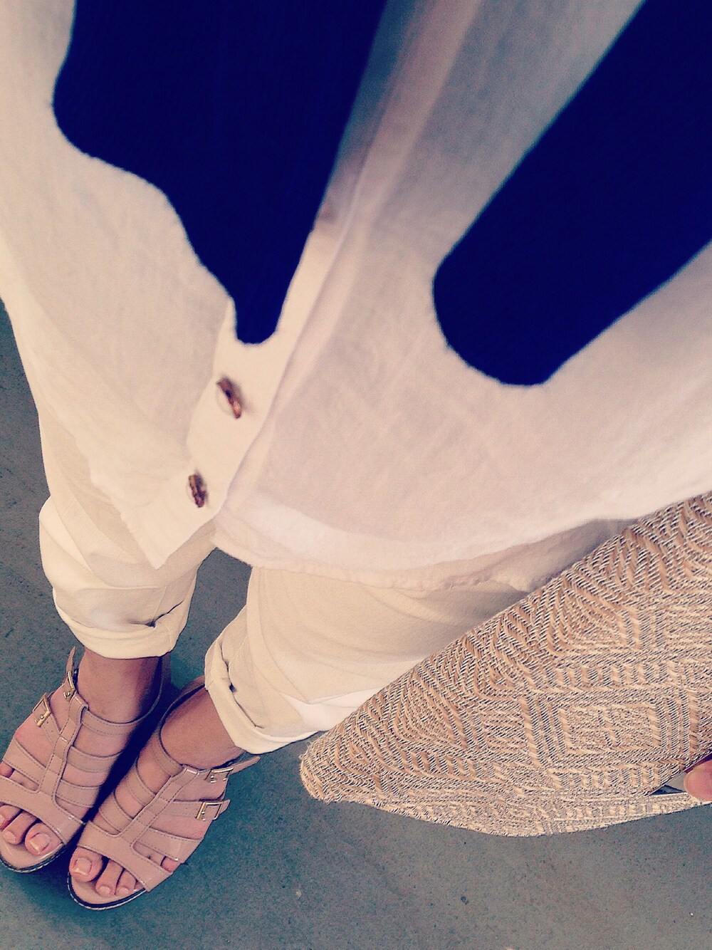 白シャツ×白デニム。 ホワイトコーデに ネイビーカーデ✳︎