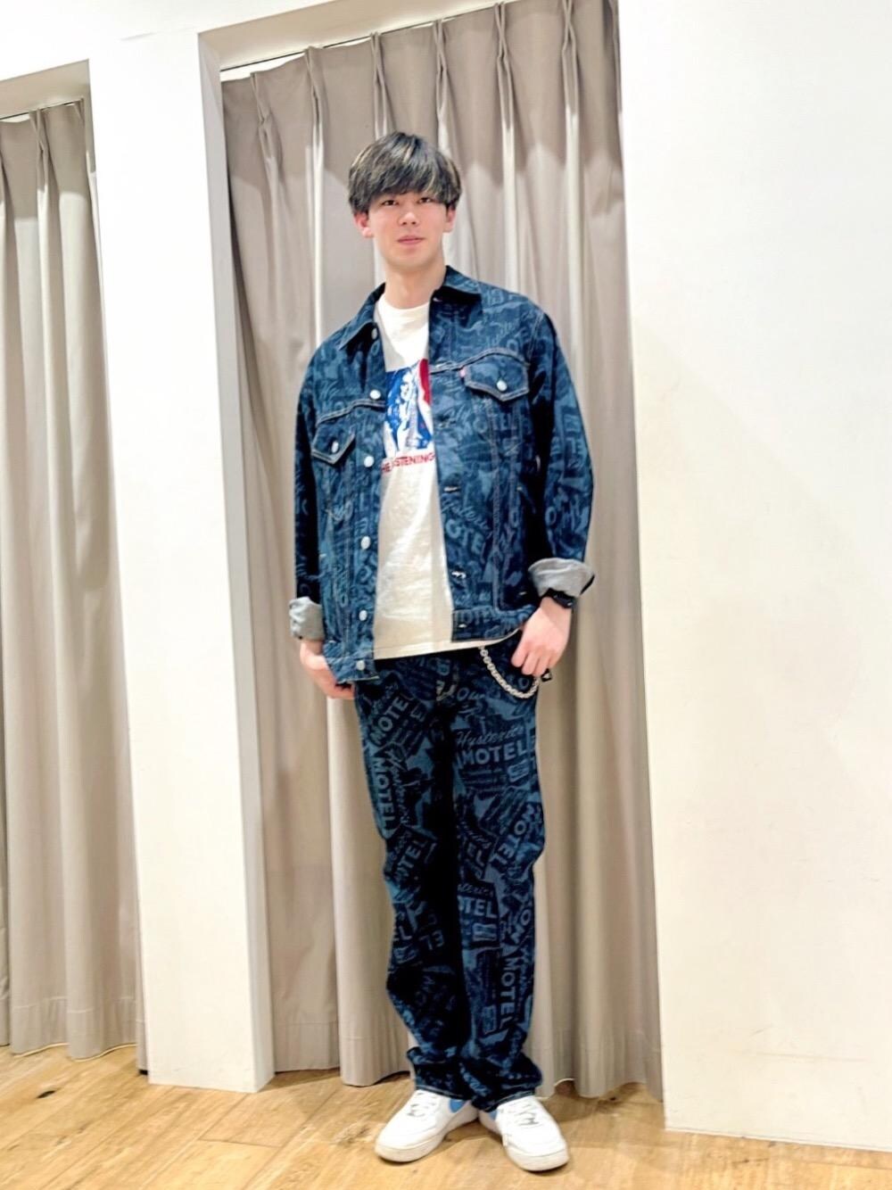 よしき(HYSTERIC GLAMOUR福岡店)のデニムパンツ「HYSTERIC MOTEL柄 60’S XXストレートデニムパンツ」を使ったコーディネート