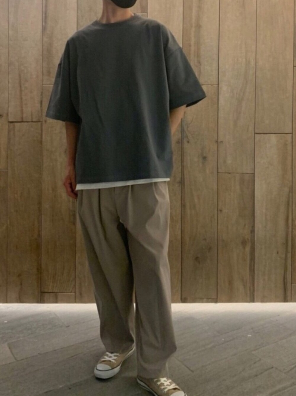 remerのloose basic Teeが最高すぎて 最近こればっかり着てる気がします◎ ブルーグレー×ベージュの組み合わせは 春らしくてすごい好きです💡