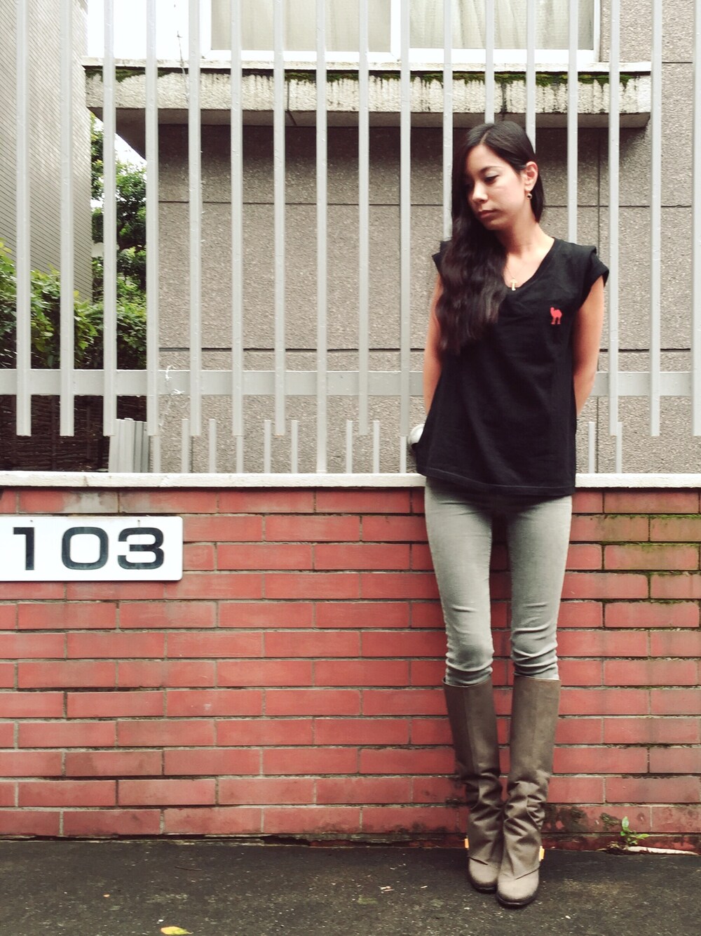 agk Vネック Tシャツ メンズ用Tシャツですが、女性に着ていただいてもらいました。 https://agkagk.stores.jp