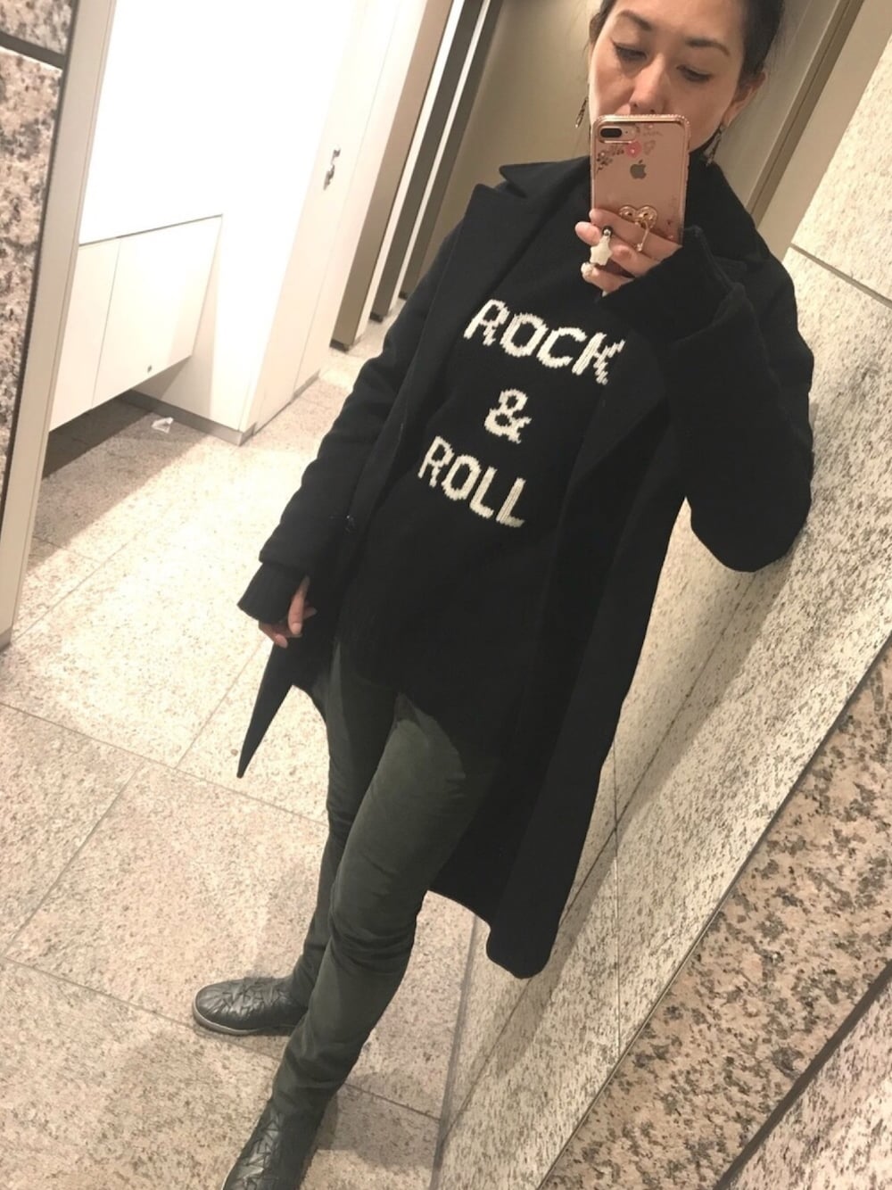 土曜日に買ったニットをさっそく着てみました✌🏻袖口に指穴ついてるのに気づきました。可愛い😍 今日のプチプラは、2000円のコーデュロイスキニーパンツです😽 それにしてもチェスターコート着すぎ😅