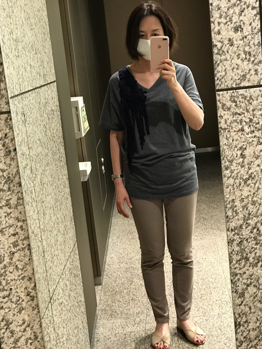 ご覧いただきありがとうございます😊 これでも通勤コーディネートです笑 カットソーは片側にだけフリンジがついてます。 いつか何か起こしそう(カレーにイン、とか)ですが、とりあえずまだ無事です。 パンツはUNIQLOはレギパンです。Lサイズを選んだので、パツパツ感もなくちょうどいいです。 ゆるゆるですが、大丈夫なのか心配はあります。足下サンダルぺったんぺったんさせてましたが…