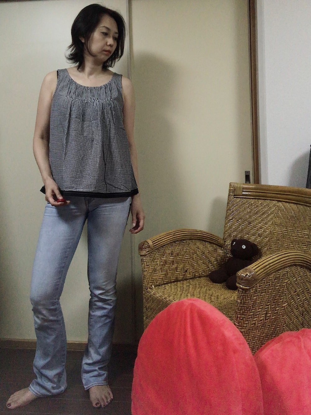 ご覧いただきありがとうございます😊 真夏かよ❣️なコーディネートです。 チェックのプルオーバーブラウスは、気に入ってるんですが今年は初めて着ました… デニムに合わせたのは初めてですがしっくりきました。 ノースリーブ、もっと暑い時期にたくさん着ておけばよかったなあ。