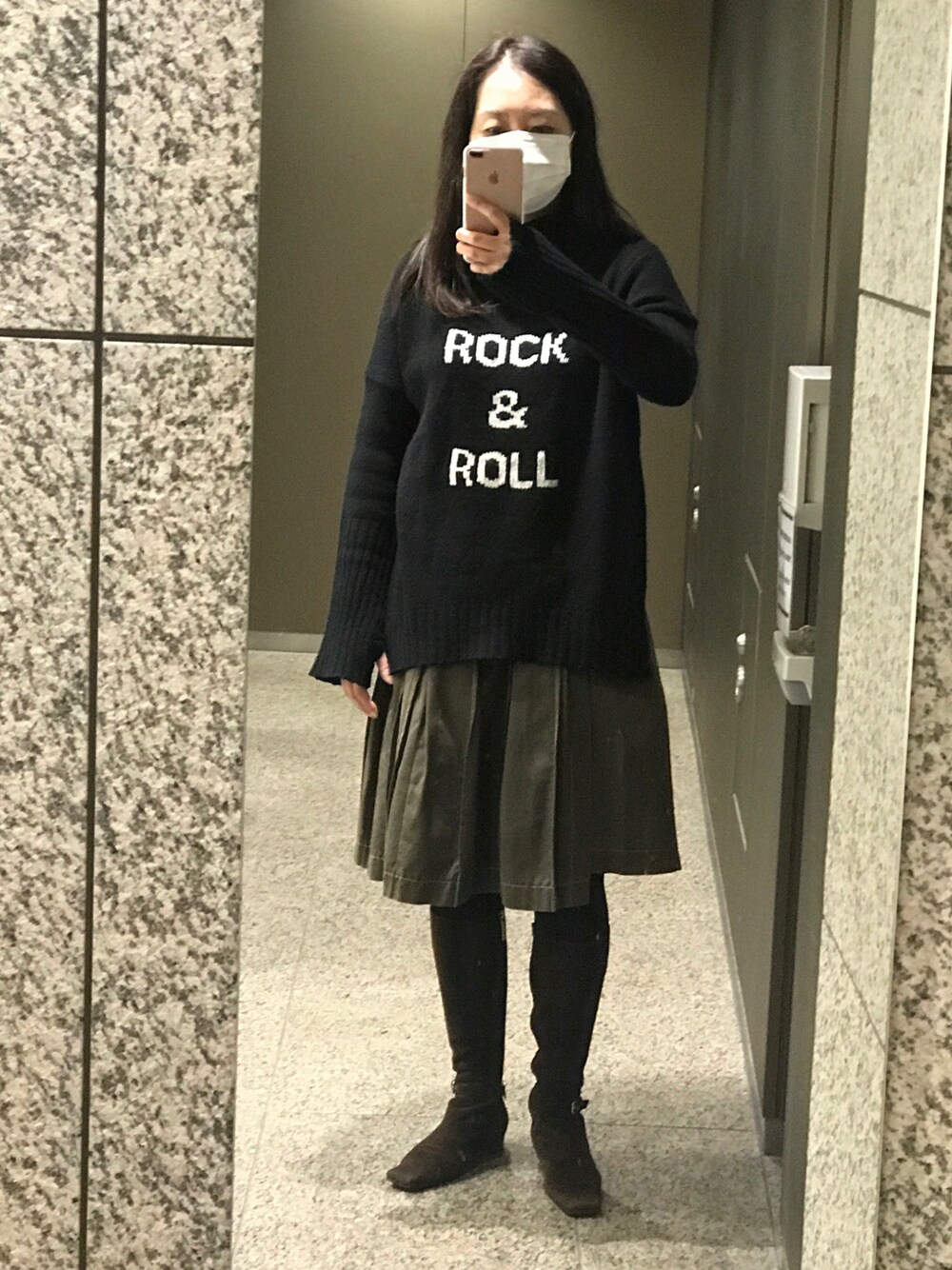 お気に入りのニットに試しに合わせてみたスカート。やっぱり良かった💕ロングブーツで暖かく。