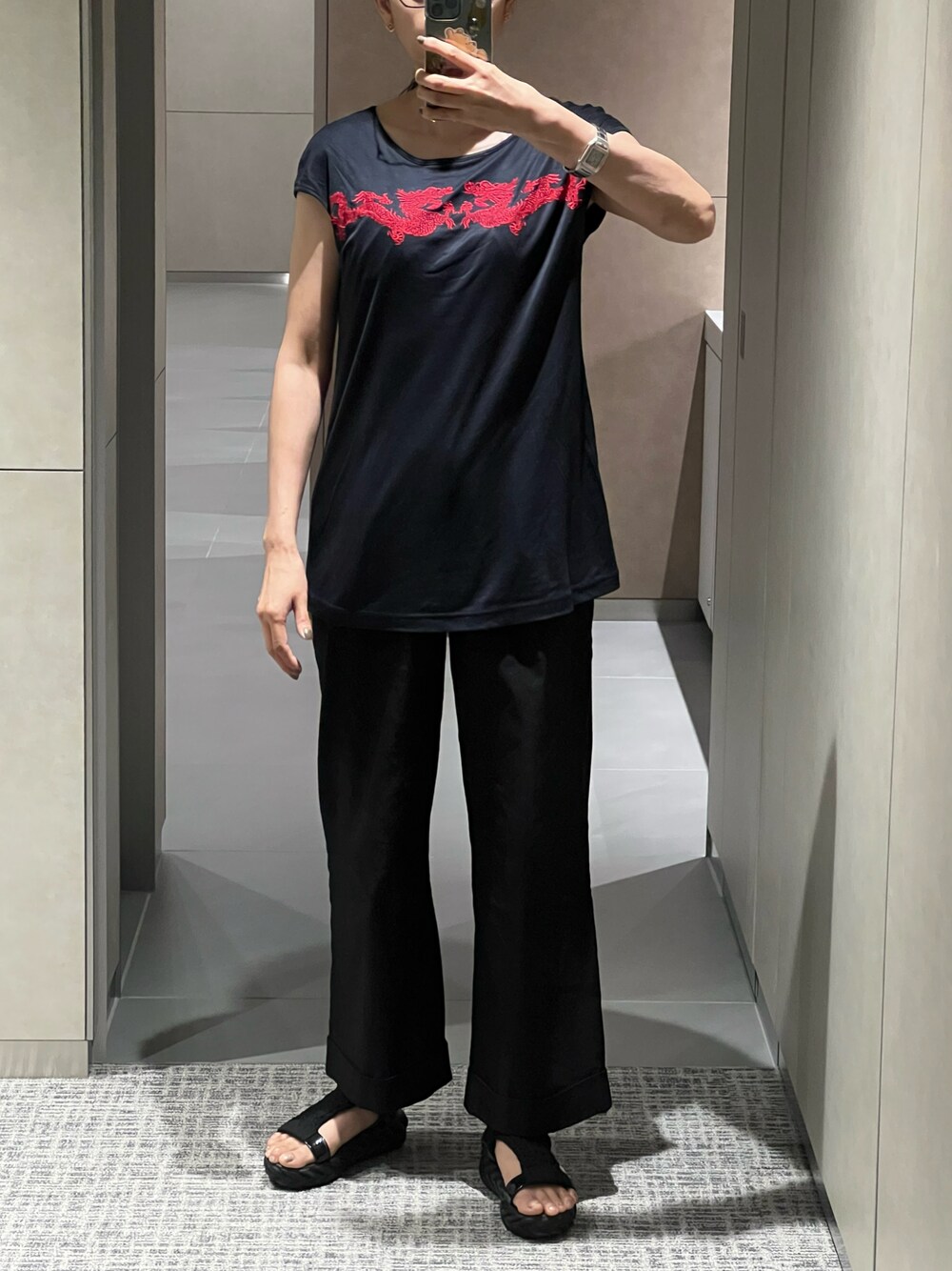 シンプル黒コーデ パンツ涼しくてシワになりにくくて良き😘
