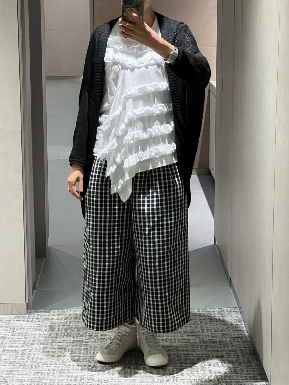 やっと夏の羽織ものが使えるようになりましたね。 今年の夏は暑すぎた… スニーカーはハイカットが好きなのですが、時間に余裕がないと履けないです。今日は頑張った。