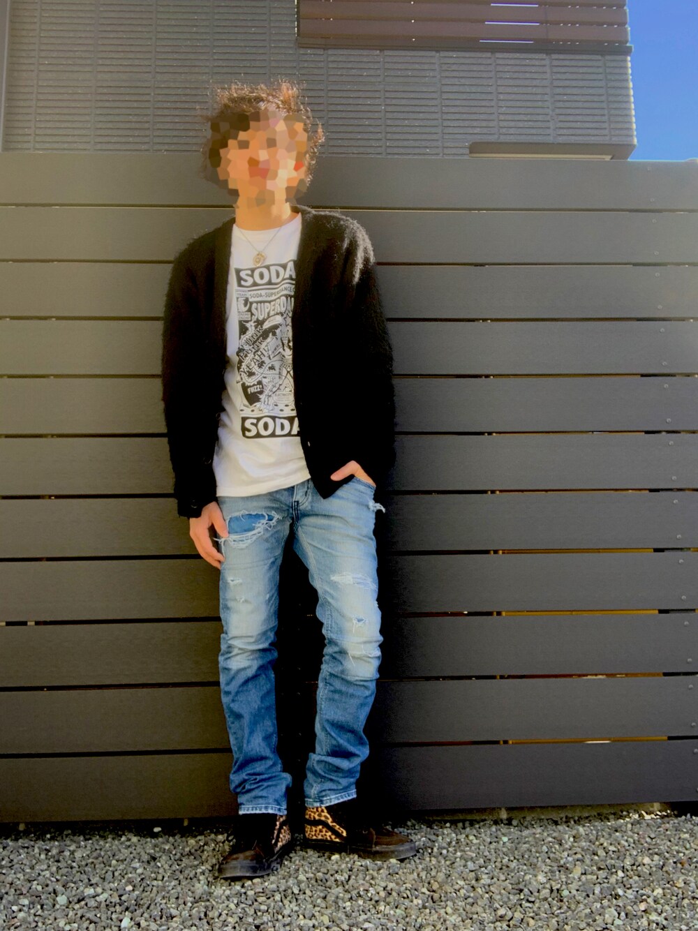 一年お疲れ様でした。 カーディガンは【BEAMS】のモヘアニット。 もうこれ一枚じゃ外出られません。 インナーは以前も載せた、 浅野忠信さんのバンド【SODA】のオリジナルのモノ。 ロンT バージョン。 ヘビーウェイトでそこそこ着やすくて重宝してます。 メルカリで見付けました。