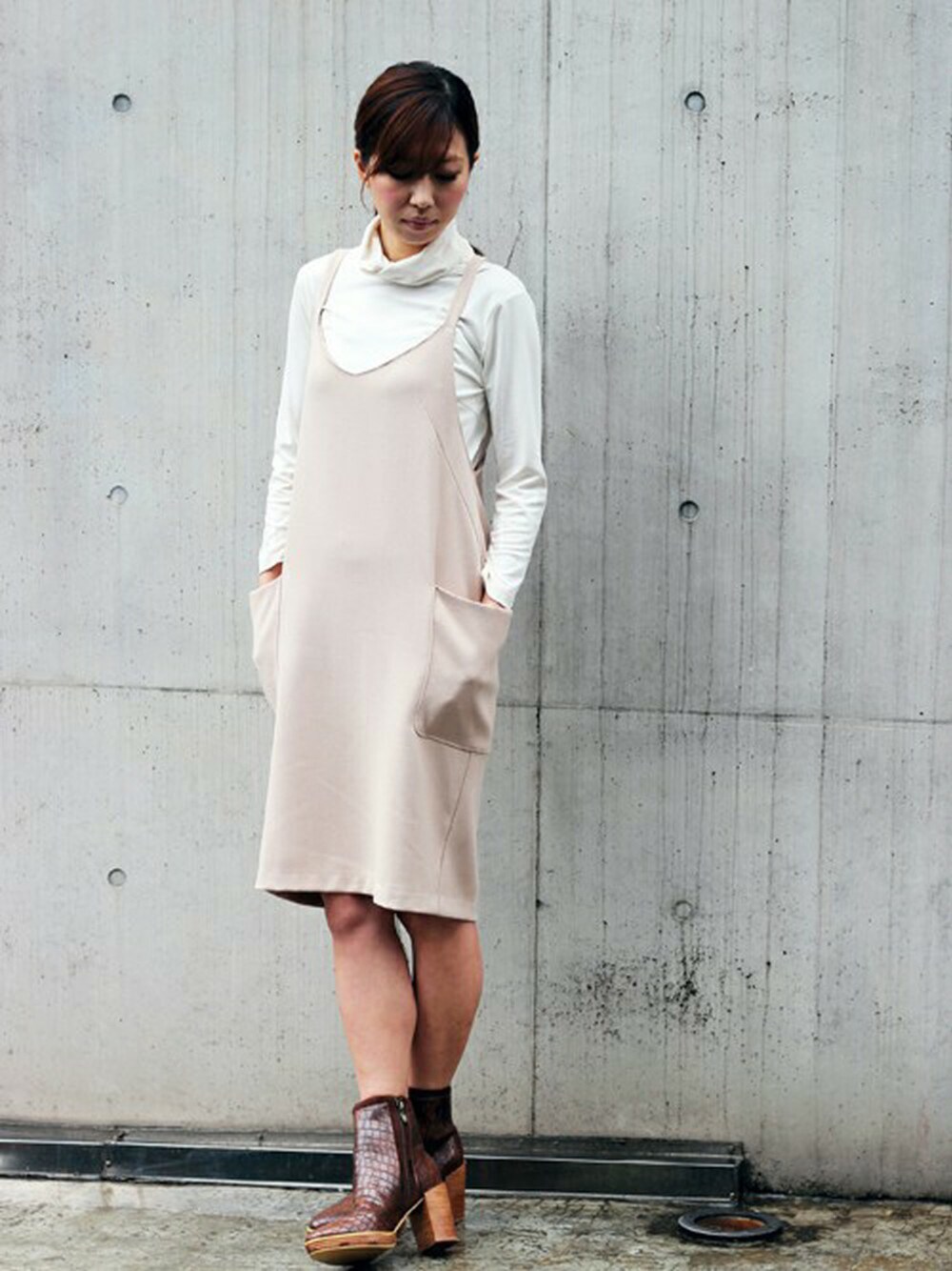 AGNOSTのワンピース「サロペットコクーンワンピース」を使ったコーディネート