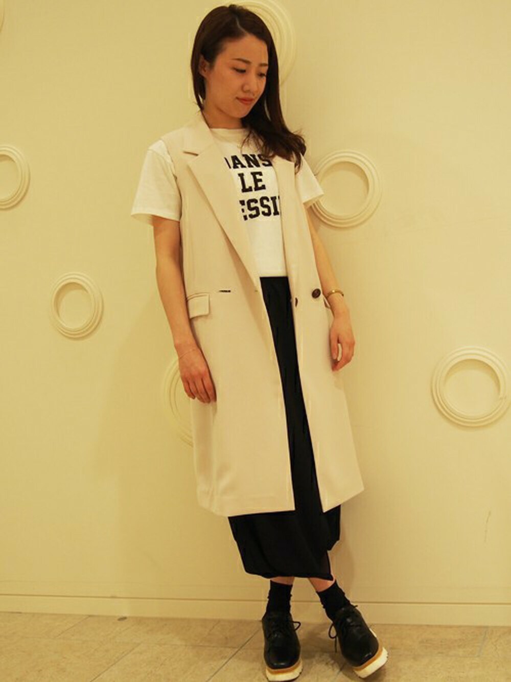 トレンドのロングジレコーデ☆ アラビアンパンツの裾がゴムになっているので、上下調節でき、色んなシルエットにできるのがポイント!!