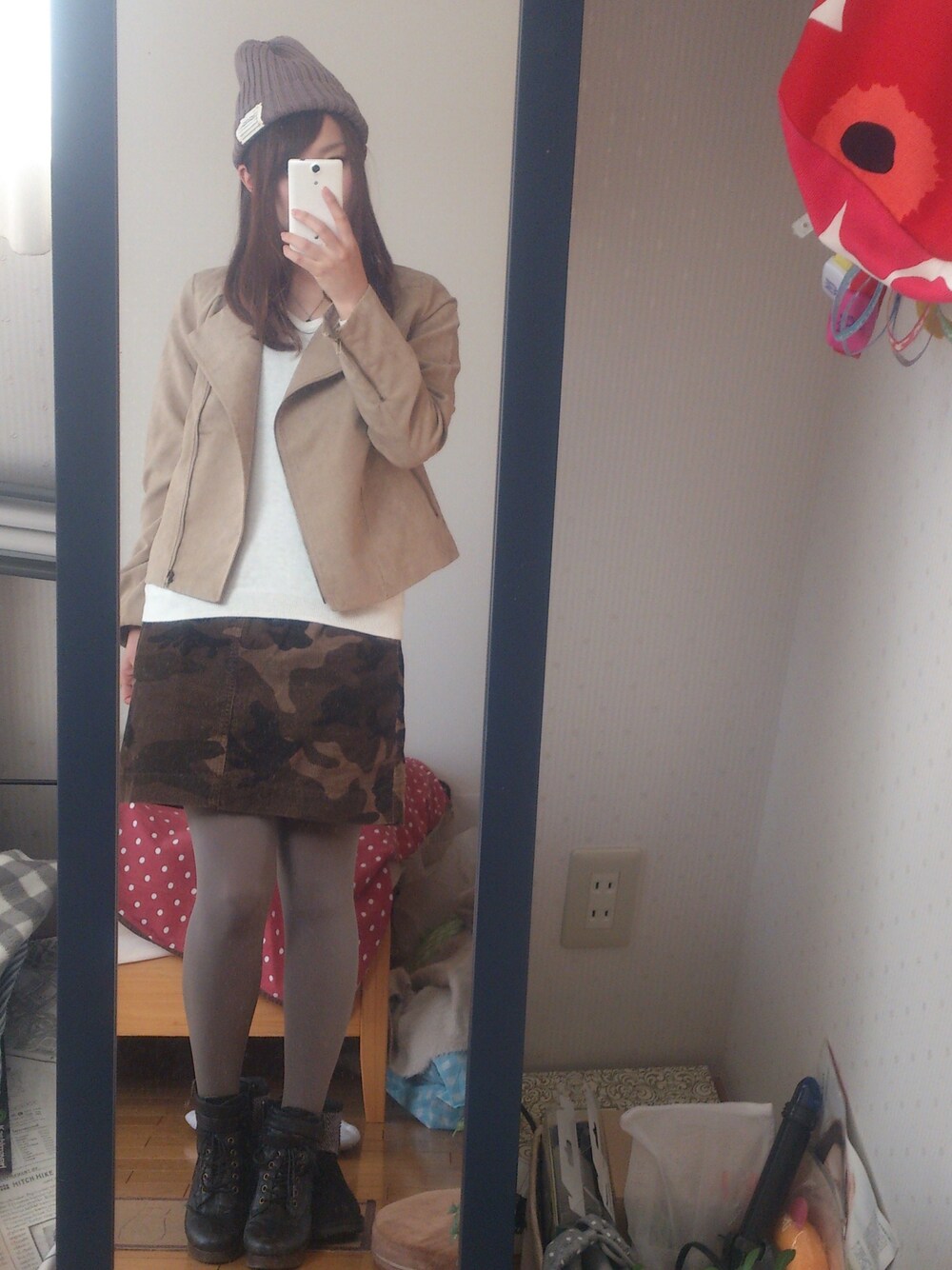 ニット…UNIQLO スカート…coen 靴…? お久しぶりのコーディネート。 今日は暖かいので薄めの上着! タイツはグレージュ色ってやつ! お部屋は相変わらず汚い((((;゜Д゜)))