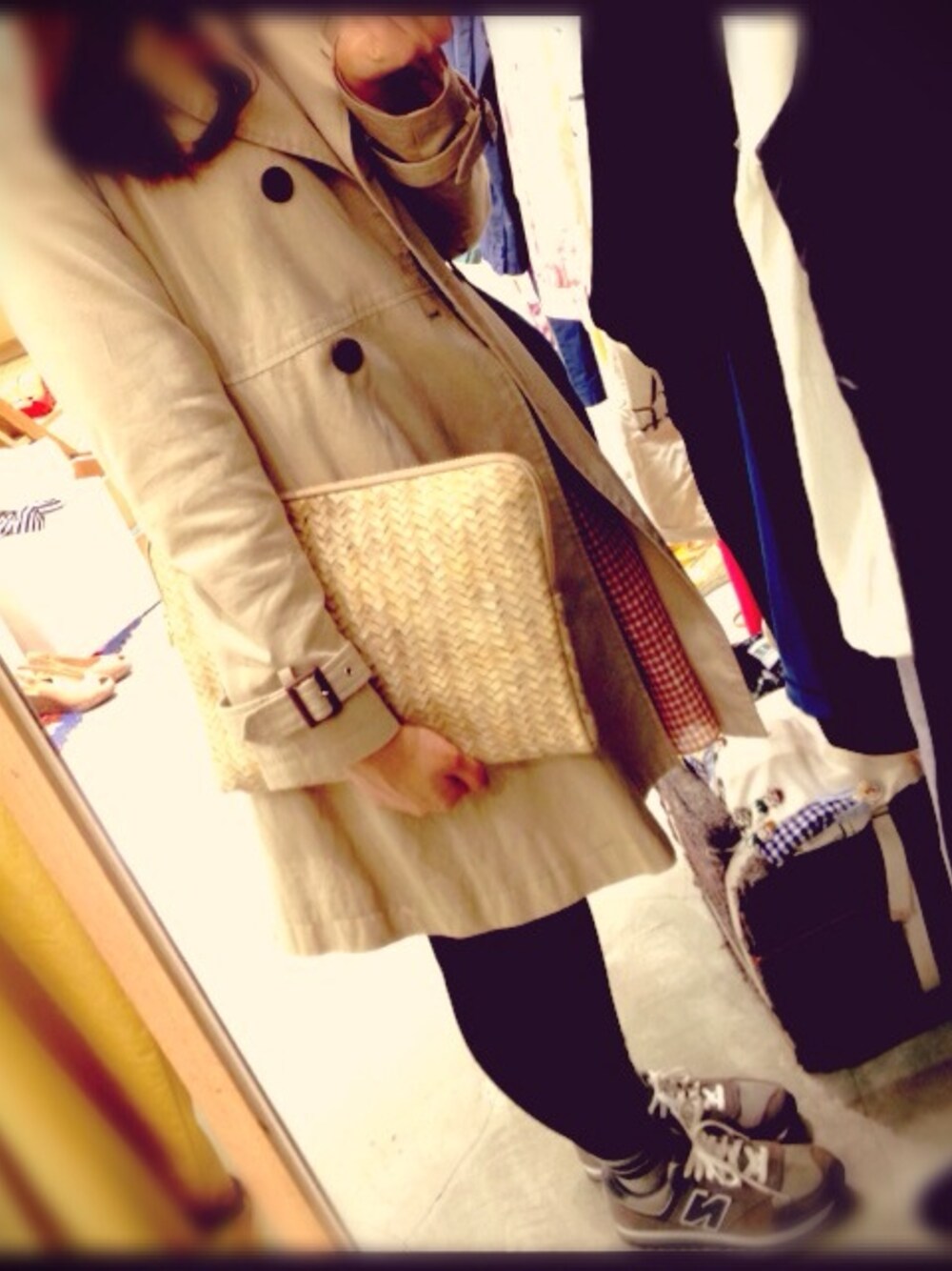 coat ; khaju Skirt ; ships Tee ; Korea ワラ柄のクラッチ♩
