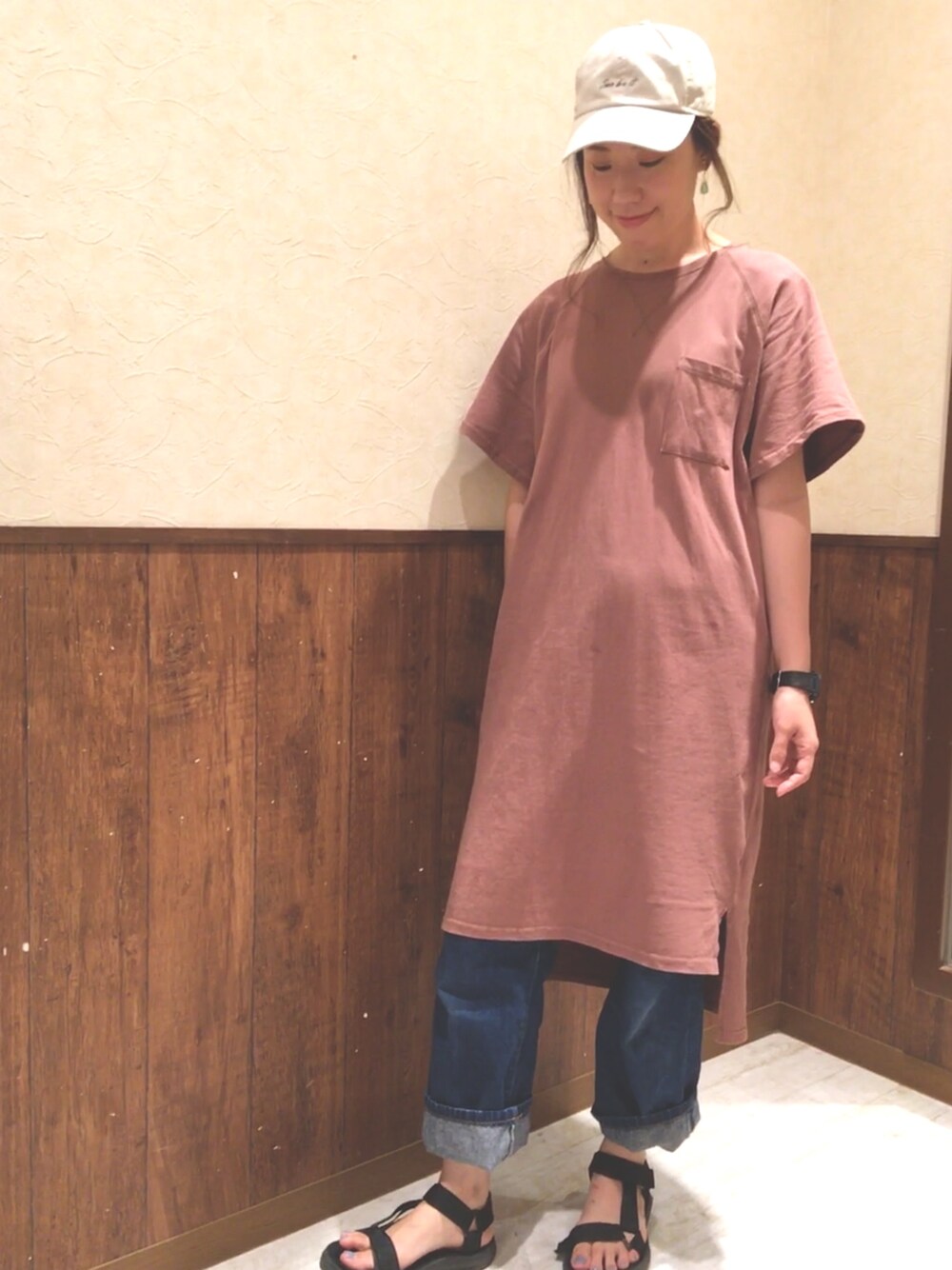 いつかの出勤コーデ(^^) この時期出勤コーデも普段もキャップ&スポサンが多くなります。 楽ちんが1番!