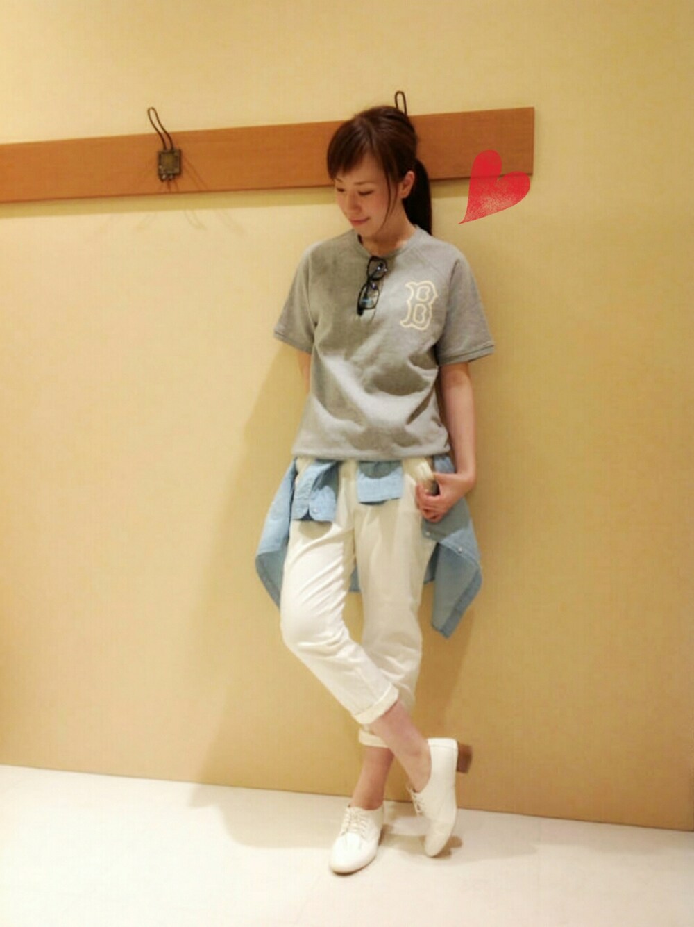 UCLAのスウェットteeが可愛かったので、これをメインにスポーティーにしてみました(*^^*) 足元はレースアップシューズでカジュアル過ぎない工夫を✴ スウェットはメンズです😃 だぽっと大きい感じがかわいい🎵