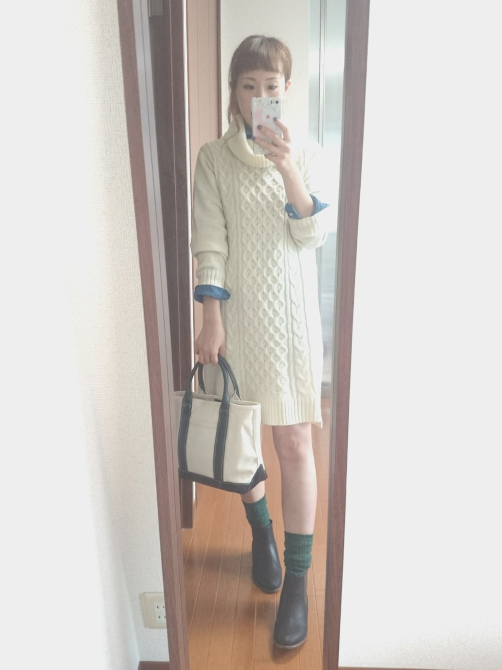 友達とお出かけコーデ🎵 ニットワンピかわいいのでお気に入り(*^^*)
