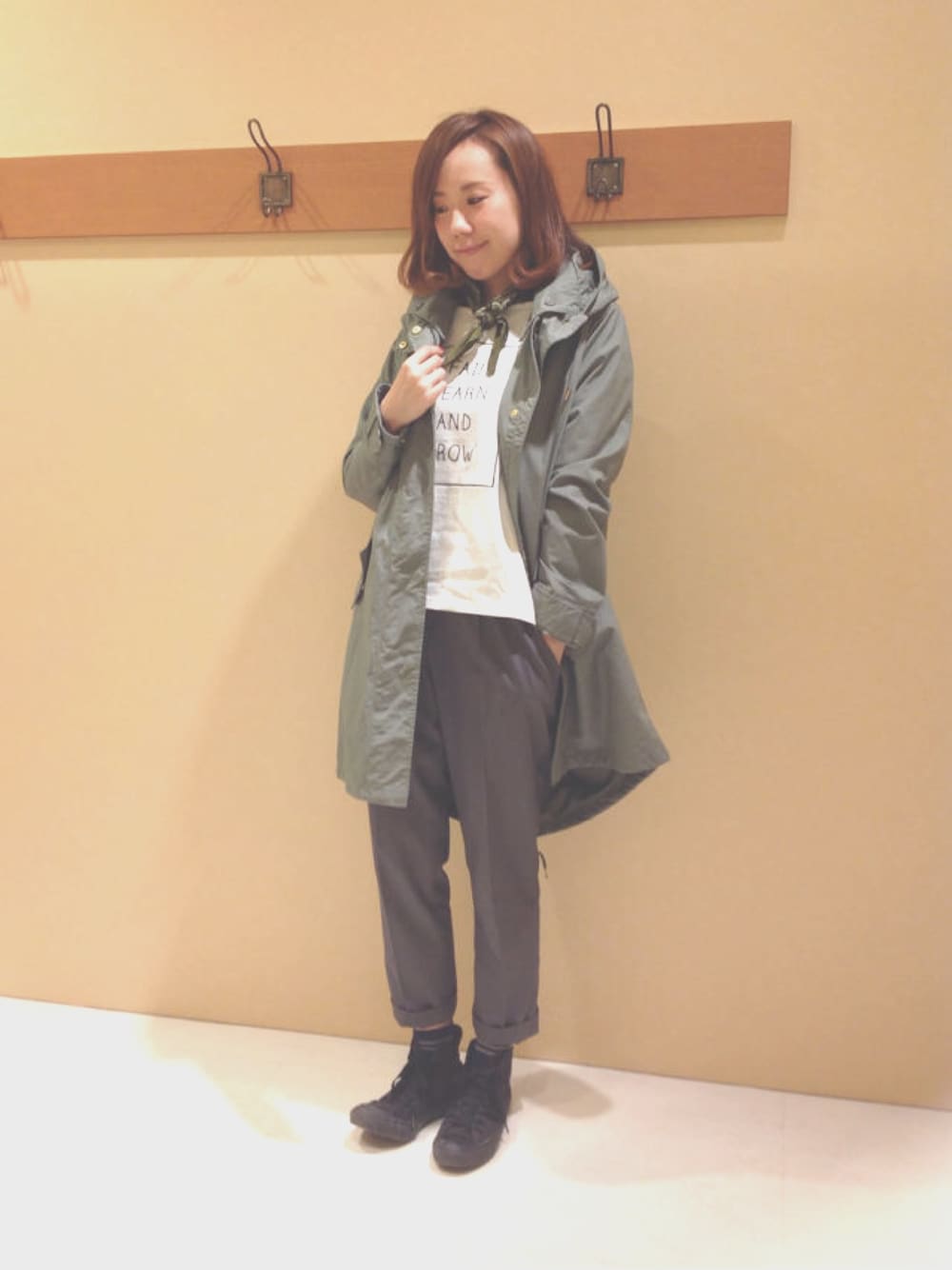 今年らしいグレーがかったダスティーカラーのカーキのコートをメインに(^^)