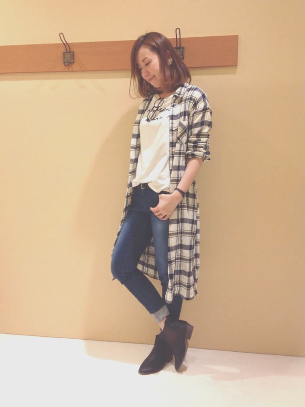 こちらはいつかの出勤リアルコーデ シャツワンピースは色々使えて便利ですな(^_^) 小物は全部ブラックでまとめてチェックを活かしてみました♪ 腕まくりいつもしてますが、これクセでして。 特に仕事中は肘関節の上までぐっとまくってないと気持ち悪く 長袖のお洋服は袖がしわしわになるのがちょっとした悩みです(。-_-。) 特にコート。