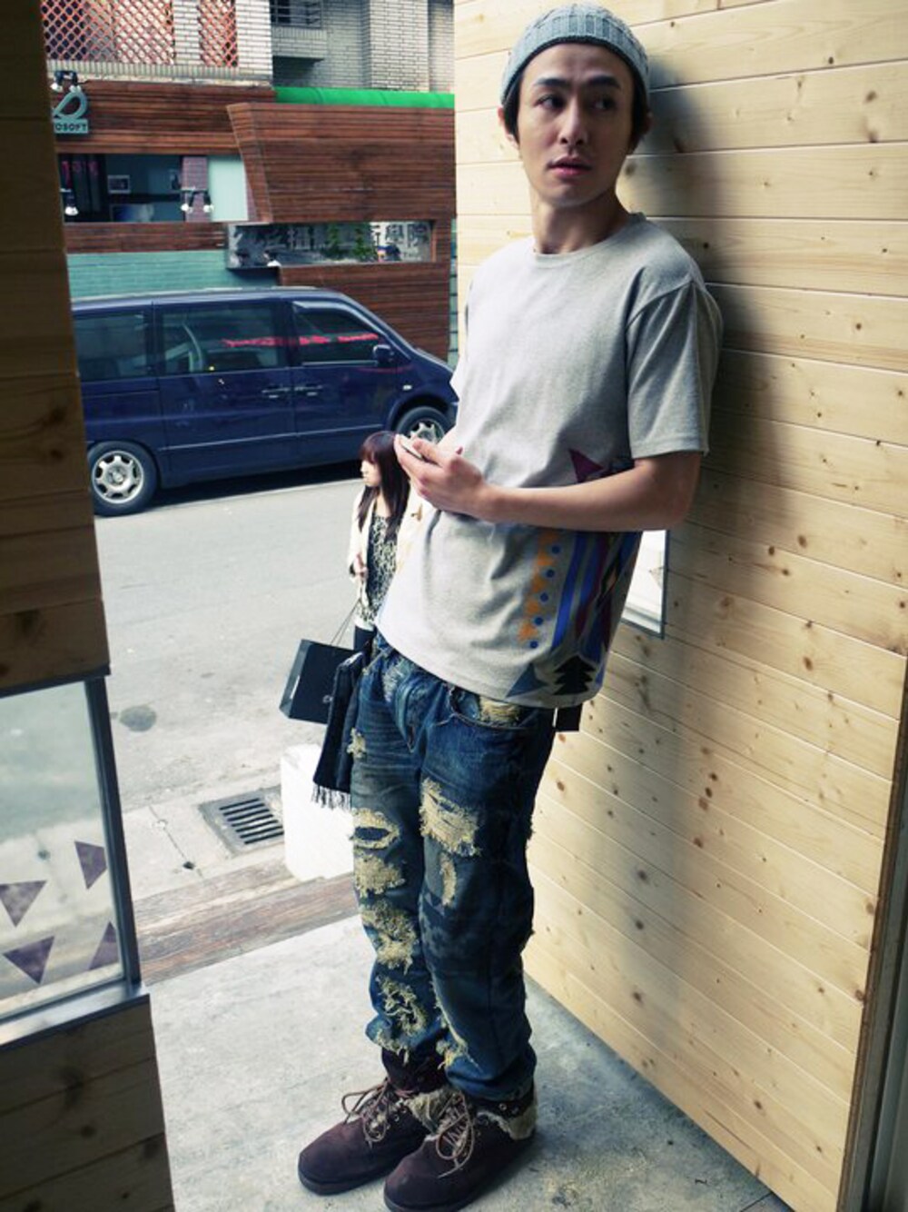 今天特別放上這張照片, 為了紀念"MISCHIEF Boutique "台北旗艦店, 2011年,我在MISCHIEF製作的第一條牛仔褲,"MISCHIEF TRYCYCLE DENIM" 販售當天,我在門口管理排隊人數的畫面~好年輕~哈哈哈