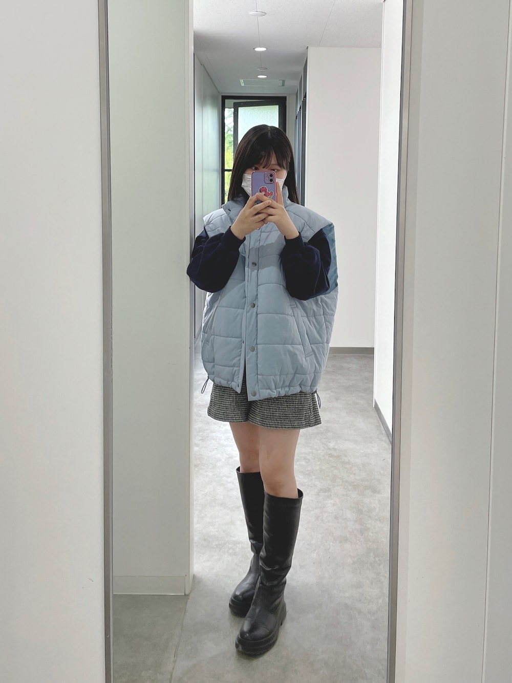 最近暑かったけど今日はちょっと寒いね このベスト大きめでロングブーツの日しか着れない😢 髪伸びたけど切るから見納め