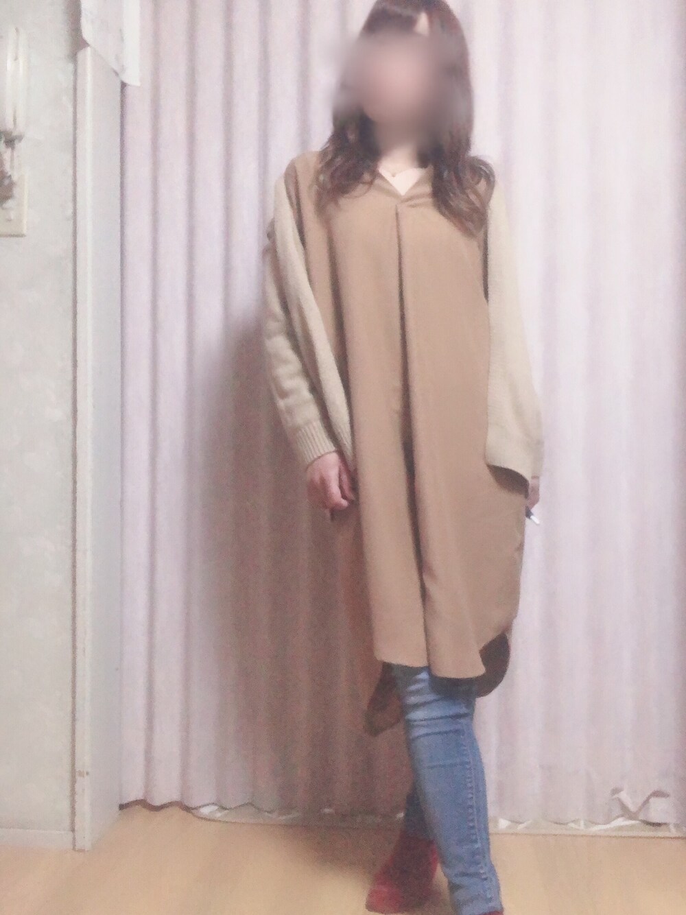 シンプル ロングシャツにカーディガン👚