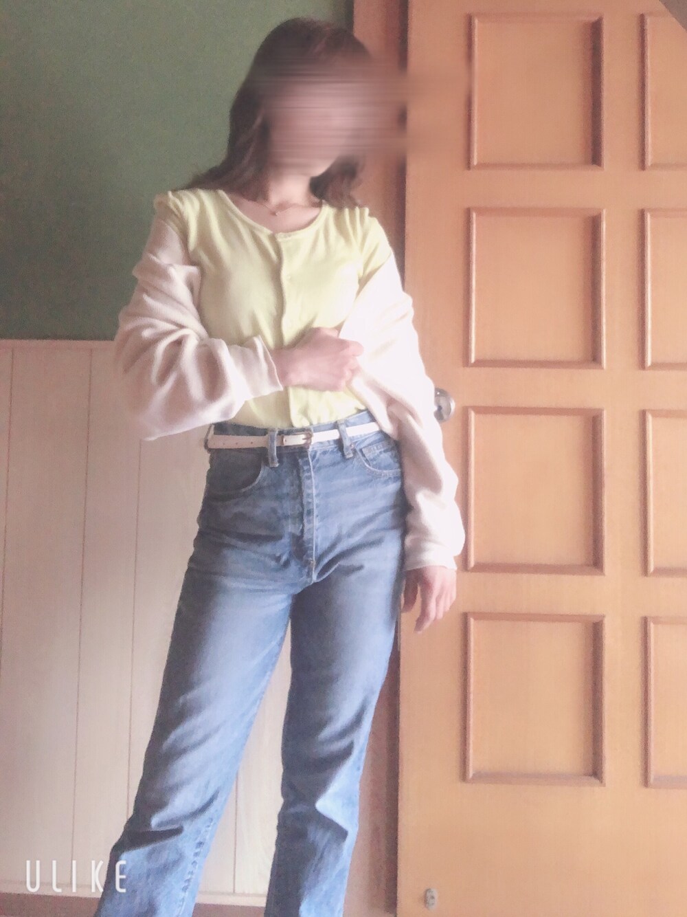 パステルカラーに 白のカーディガン、デニムで シンプルに👚