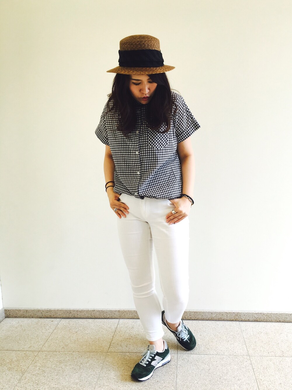 休日コーデʕ•̫͡•ʔ♬✧ ギンガムチェックにホワイトパンツで大人カジュアル目標