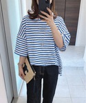 ⁑⁑ぁぃ⁑⁑のTシャツ/カットソー「バスクボーダー5分袖BIGプルオーバー」を使ったコーディネート
