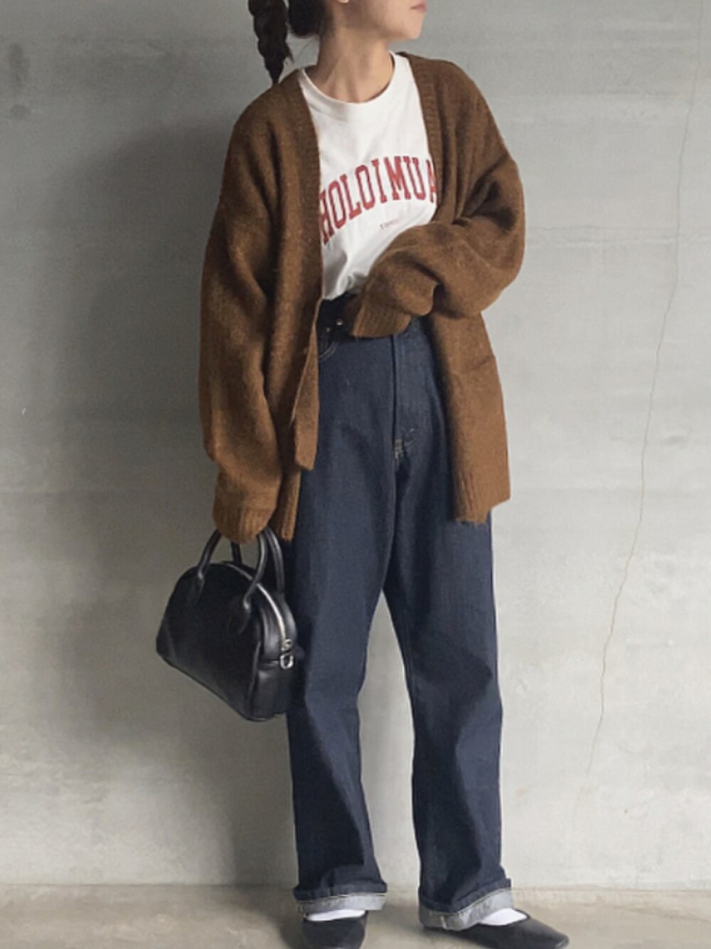 カーディガン🐻 Tシャツに サッとはおれる ちょー便利😚 ブラウン合わせやすい🤎