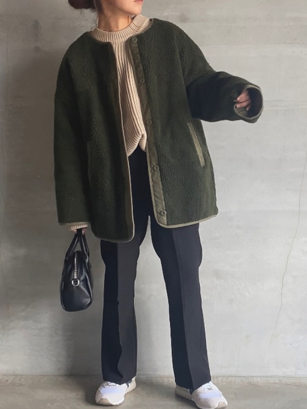 ⁑⁑ぁぃ⁑⁑のノーカラーコート「【ZOZOTOWN限定】リバーシブル/ボアフリース×キルティングノーカラーコート」を使ったコーディネート