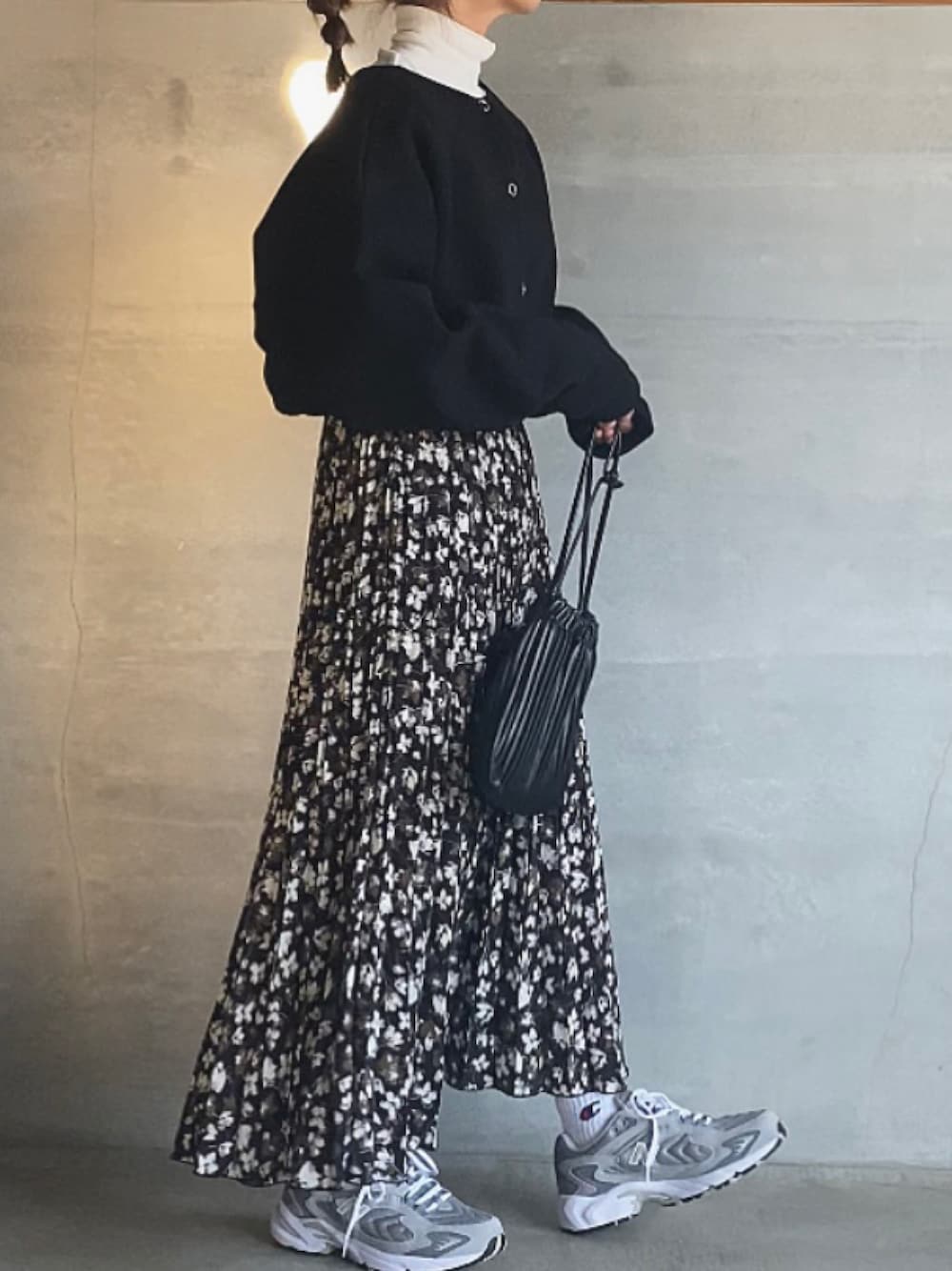 はいっ! 今日もこのカーディガン🖤 気に入ったらめちゃ着るタイプ笑 スカート合わせももちろん かわいいー🤤❤️ 足元のごっつい感じとの バランスが好きー👟🖤