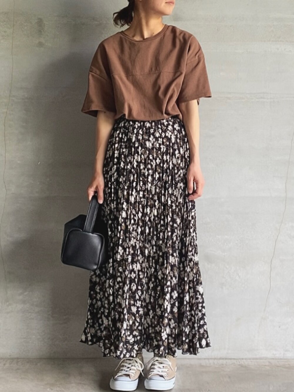 ビシッ!🧍🏼‍♀️笑 たまにはスカート そして お久しぶりのブラウン🤎 ディスコートのバッグも お気に入り🖤