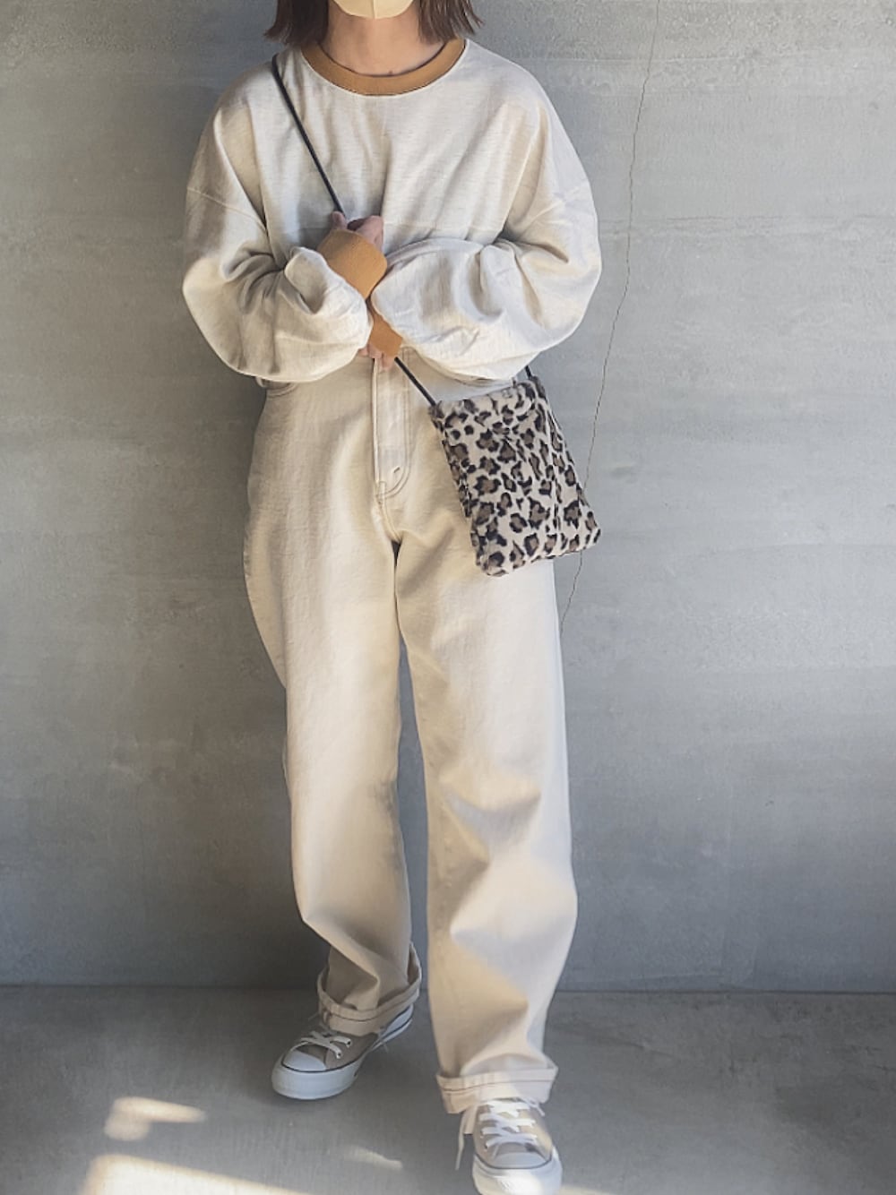 recaの配色リブプルオーバーコーデ😚 ゆるっとが好きな人にはおすすめ〜 出して着ればお尻がちょうど隠れ ちゃう丈感🧡 私はワントーンでまとめました😚