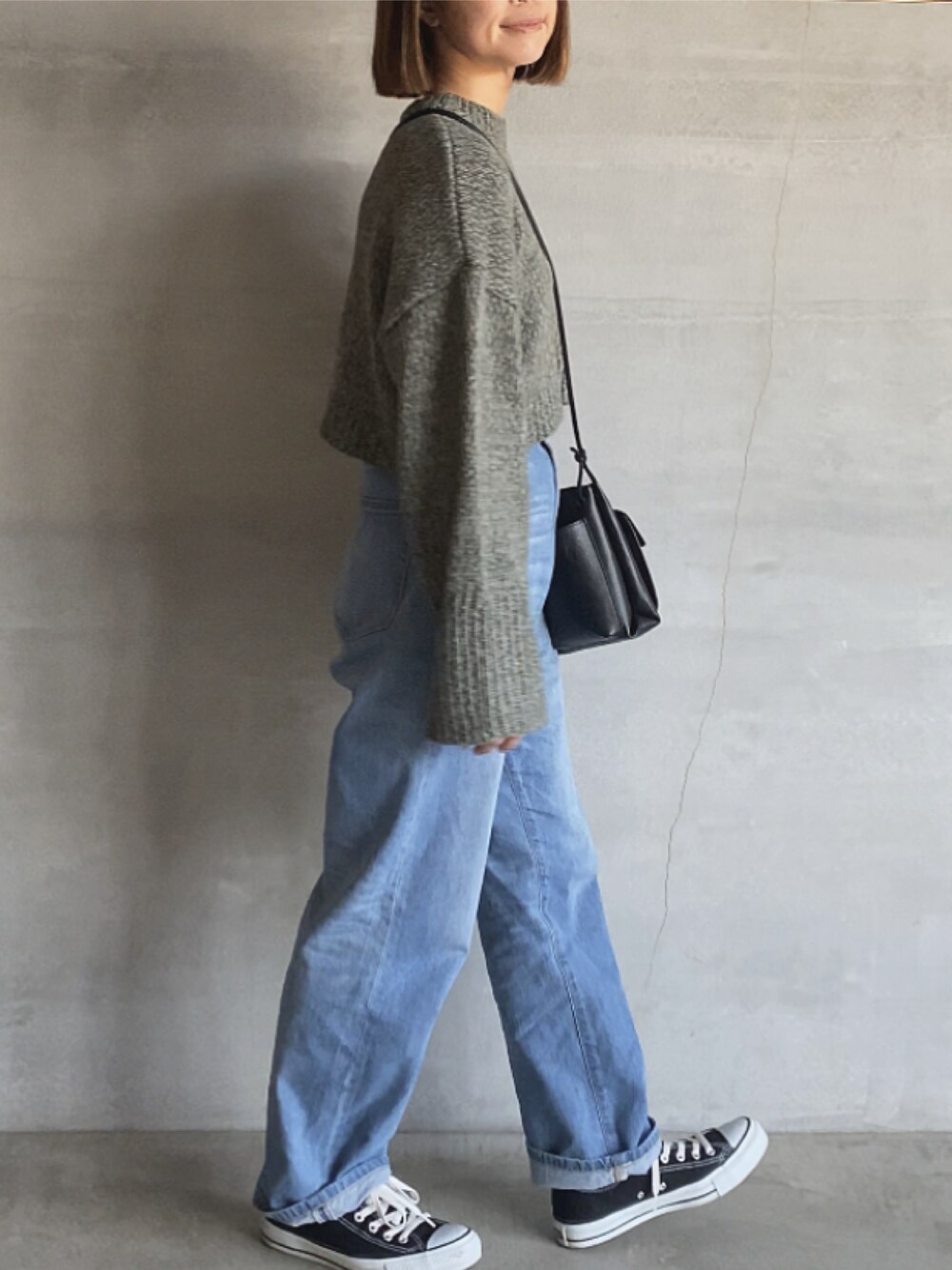 ⁑⁑ぁぃ⁑⁑のニット/セーター「【ハンドウォッシャブル】メランジショートオーバーニット」を使ったコーディネート