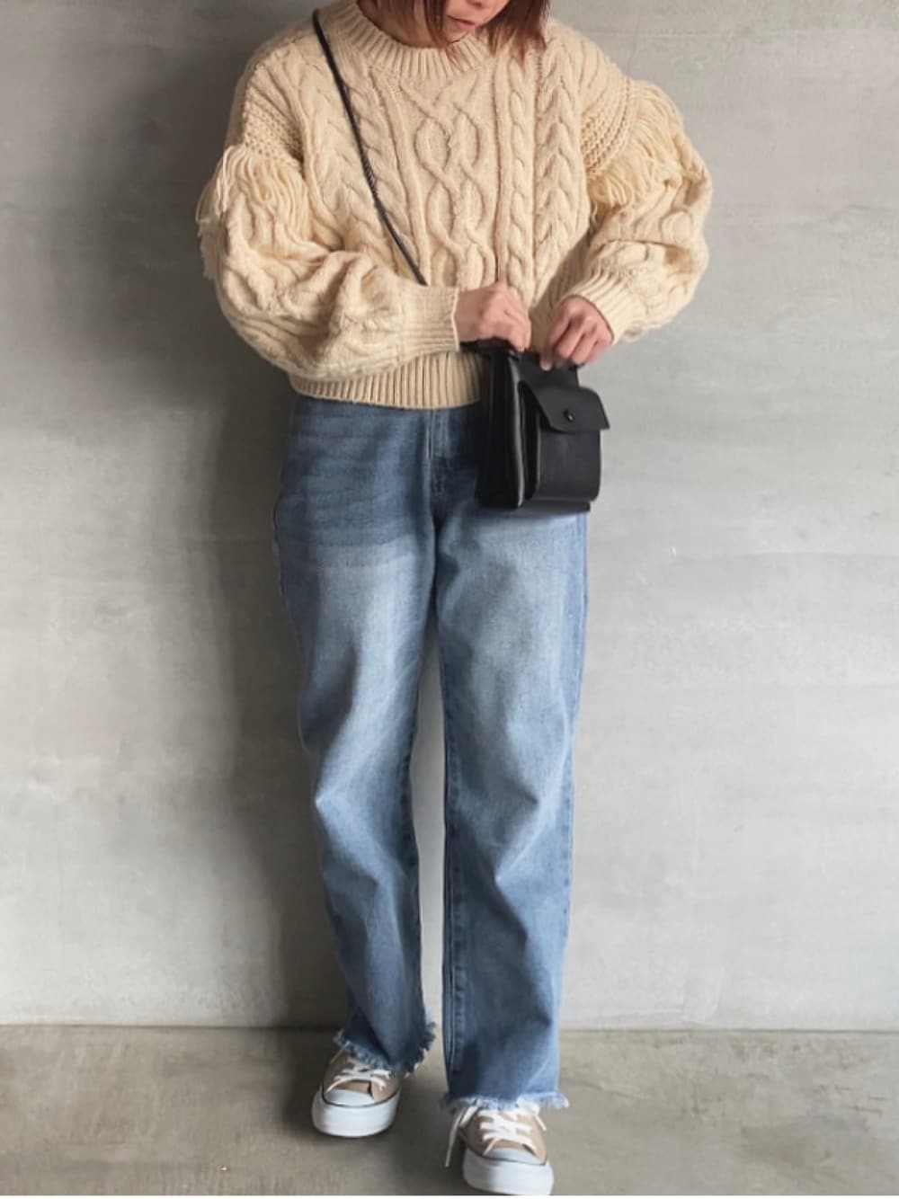 ⁑⁑ぁぃ⁑⁑のニット/セーター「フリンジケーブルニットロングスリーブ 166333」を使ったコーディネート