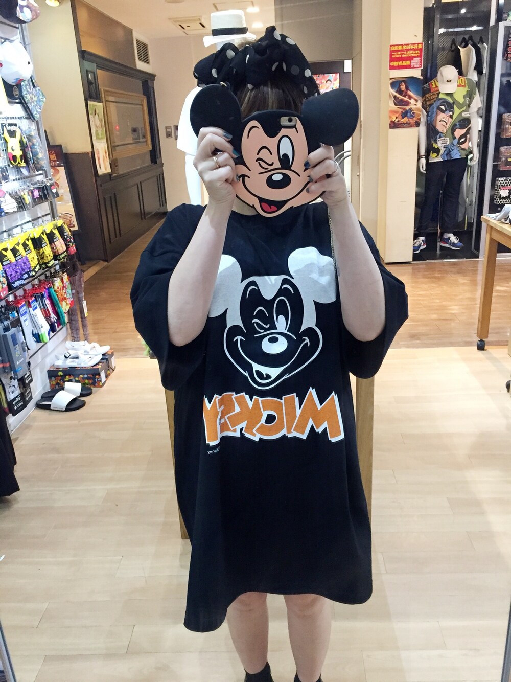 お久しぶりです♡ 私ごとですが、パニカムを今月10日で離れることになりました。 またレディースアパレルに戻りますので キャラクターアパレルではなく女子のお洋服の写真をのせていけたらいいなと思います! ミッキーのビックTシャツは実は3XLのビックサイズ!ワンピースみたいに思いっきりダボって着るのが可愛いです☆ そしてそしてお気に入りのミッキーのアイフォンケース♡ 写真とるの楽しくなっちゃいます! これもってディズニー早く行きたいですね♡◡̈⃝⋆* アイフォンじゃない方でもチェーン付きなのでぶらさげてるだけでも存在感ばっちしすぎて可愛いです!