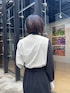 一枚で主役級になるブラウスは伸縮性もあり、着心地も抜群な1枚◎アウトしても可愛いですが、腰回りにデザインのあるIラインのスカートと合わせて、モノトーンコーデにしてみました!