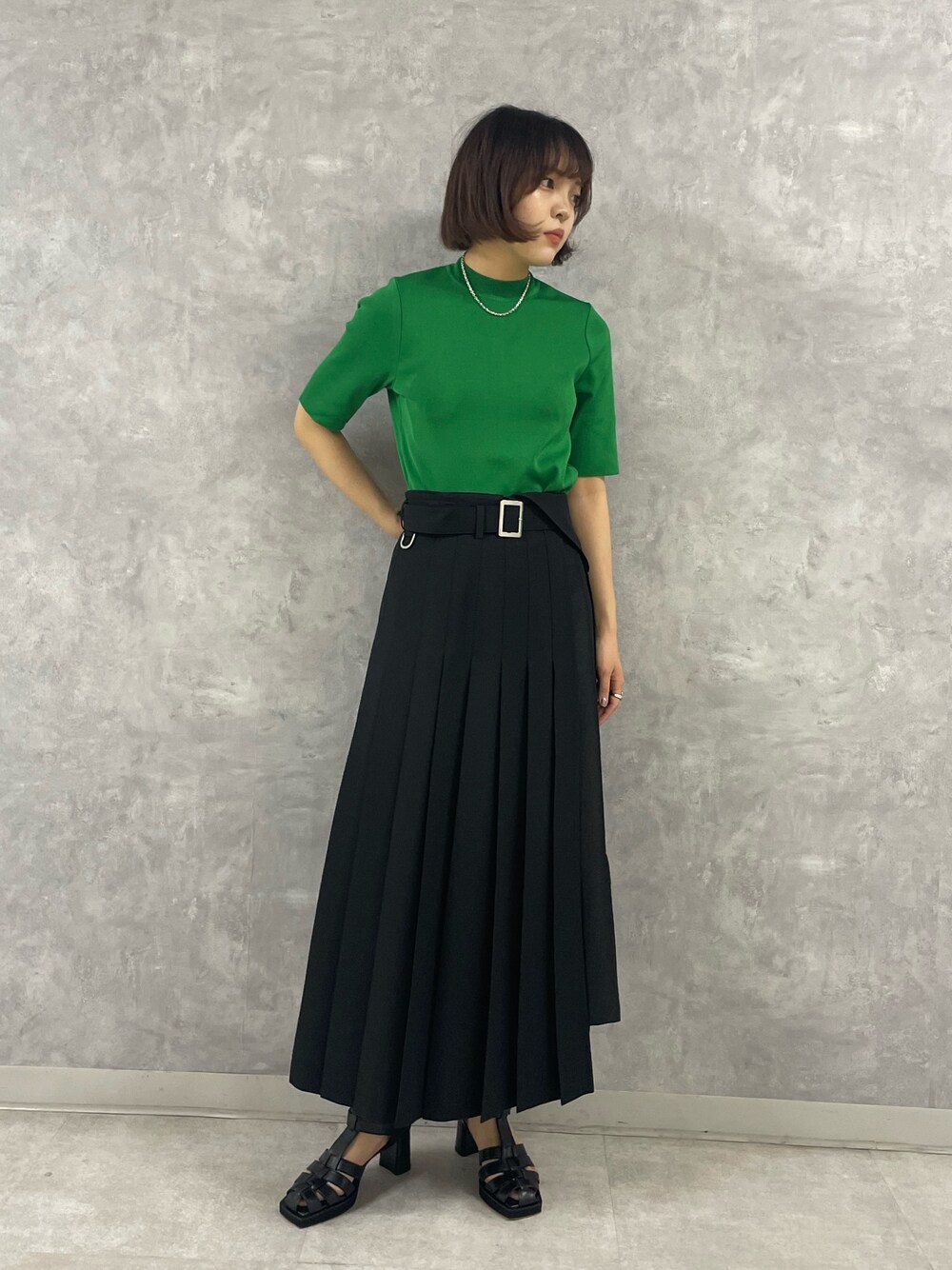 袖丈がしっかりある嬉しいサマーニット◎ 二の腕のラインを拾わず、スッキリ見せてくれるので視覚的に細見え効果抜群です! ベーシックなトップスに、アシンメトリーなデザインのスカートと合わせて綺麗めなコーデにしてみました。