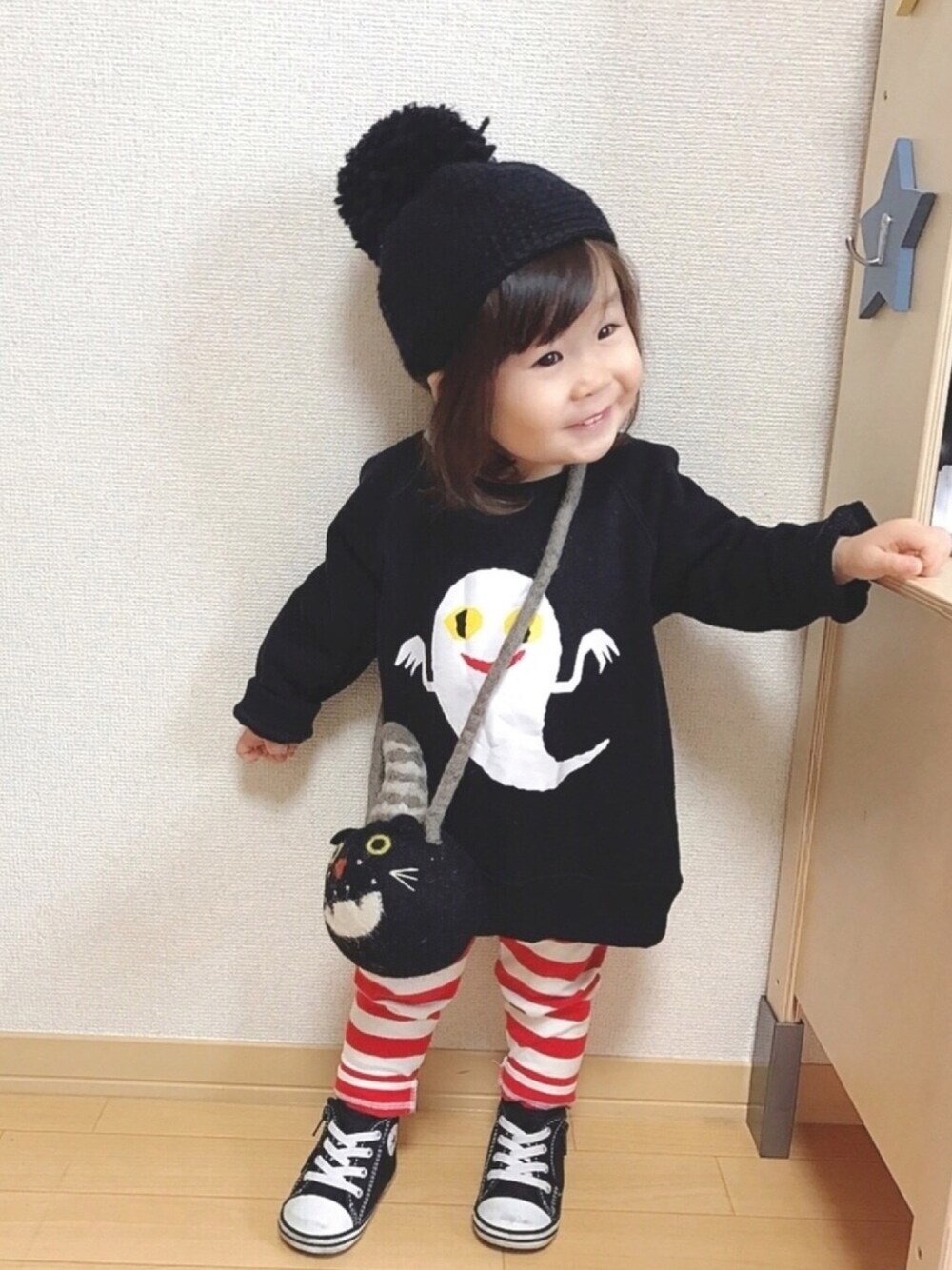 ご覧頂きありがとうございます🙇💓 いつも♡、お気に入り、コメント、フォロー嬉しいです😊❤️ 昨日のメイさん。 おばけなんてなーいさっ👻 の巻。 昨日のコーデ♡ ハロウィン本番は大好きなみんなとオソロのおばけスウェットを👻✨ ねないこだれだの絵本も大好きなメイさん😉💓 このスウェットもお気に入りなようです🙌 UNIQLOのボーダーレギンス合わせで動きやすいお散歩コーデでした☺︎☺︎ ひなこちゃんからプレゼントしてもらったニャンニャンポシェットに大好きなラムネを詰めてご機嫌に出発🏃♀️ ニャンニャンって言いながらぎゅーしてるこのポシェット🐱お気に入りだね💓 ひなこちゃんありがとう🙏 manmaruさんのビッグポンポンを被って暖かコーデでした✊ 小窓。 お散歩を兼ねた消耗品の買い出しに出かけた時の写真を📸 相変わらずかごは持ってくれます笑 重くなるとこの持ち方😂 ちびっこだけど力持ちーー💪💯✨ 帰りはスタバでまったり☕️ ハロウィン限定のミステリーフラペチーノ?ギリギリ飲めました♡ 飲むまで何味かはお楽しみ❤️とか書いてあったけど、飲んでも何味かわかんなかった…🙄← 誰か正解知ってたら教えてくださーい😂😂😂笑