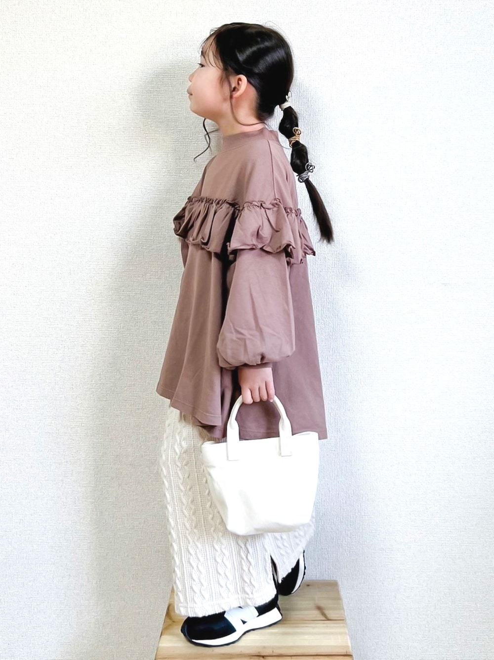 ご覧頂きありがとうございます🙇♀️💗 いつも♡、お気に入り、コメント、フォロー、フォルダインも嬉しいです😆 今日のメイさん。 フリル✨ の巻。 こんばんは🌕 B.G ROOM STOREさまより♡ NHT No.520261 ボトルネックフリルロングTシャツ ¥2,970(税込) 👧グレー系その他3/120cm着用 フリルが可愛いボトルネックTシャツを着用させてもらいました♡ 胸元の大きめフリルと、ふんわりボリューム袖がガーリーで可愛い🎀 ボトルネックなところも好き♡♡ メイは120cmで少しオーバーサイズに着たよ〜✨ タイトなケーブルニットスカートに合わせて秋コーデです🍁 このロンT、生地がすっごく柔らかくって着心地良さそ…♡♡ ぜひチェックしてみてください🙌 ☺︎May☺︎ 6y7m 【111.3cm/19.4kg】 ig ▷▷▷ @aaaaatan1025 TikTok ▷▷▷@may_4623 プロフィールから飛べます✈