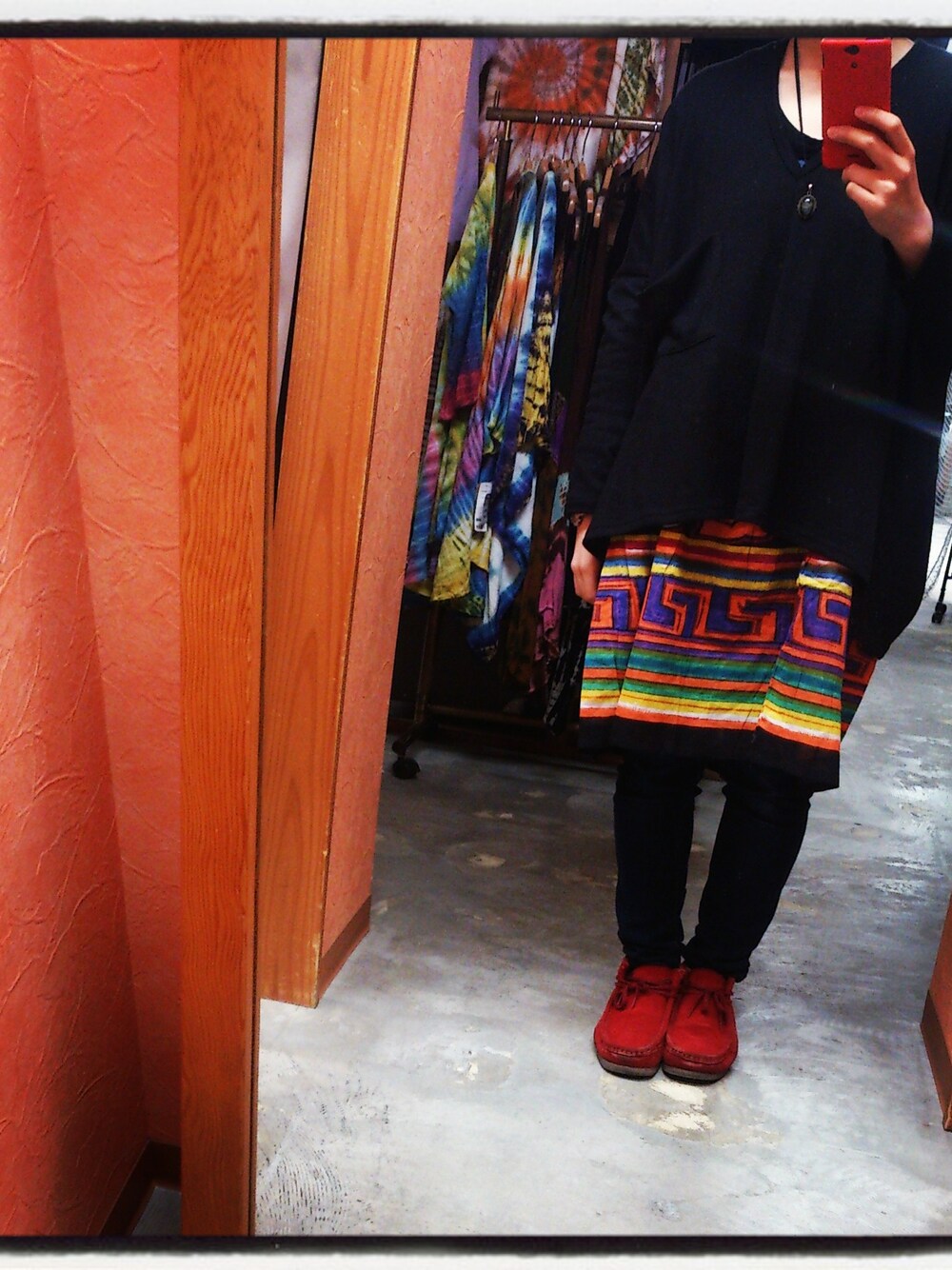 カラフルなエスニックテイストたっぷりのスカートです。 ベアワンピースとして着用しても可愛いです。