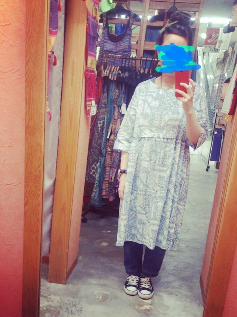 暑くなってくると毎年、ボヘミアンな服装をしたくなります。 でも今日は肌寒かったので、全体の色使いで夏っぽさをだしてみました。 ヒールのある靴が苦手なので、丈の長いものを着用するとバランス悪くなってしまいます。 2mは欲しかったです、身長。 可愛いアイテムたくさん入荷中です!