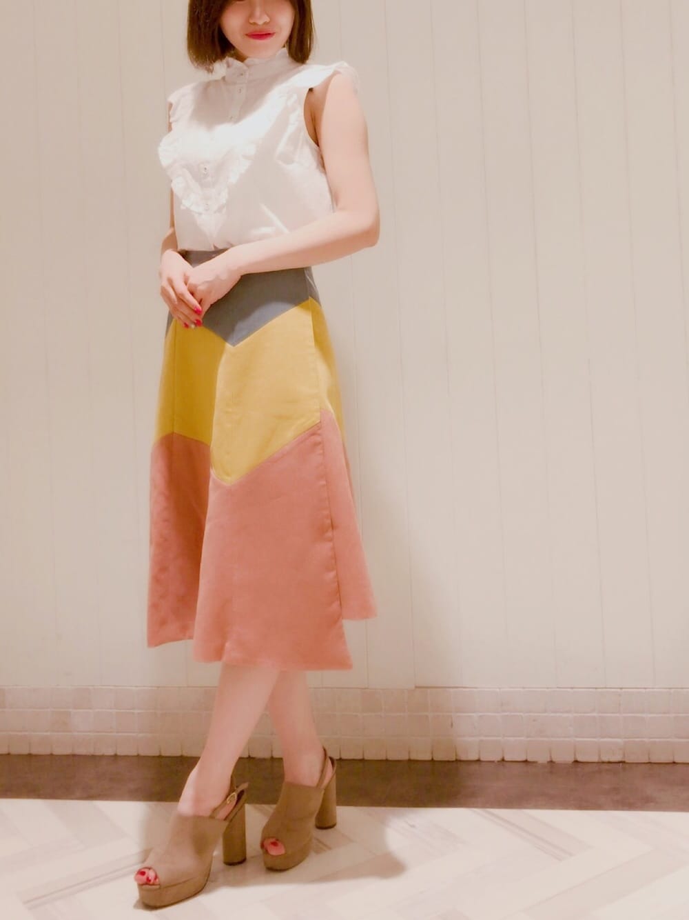 ジグザグスカートは巻きスカートになっててかわいい!ロングで大人っぽく見えるかな♡
