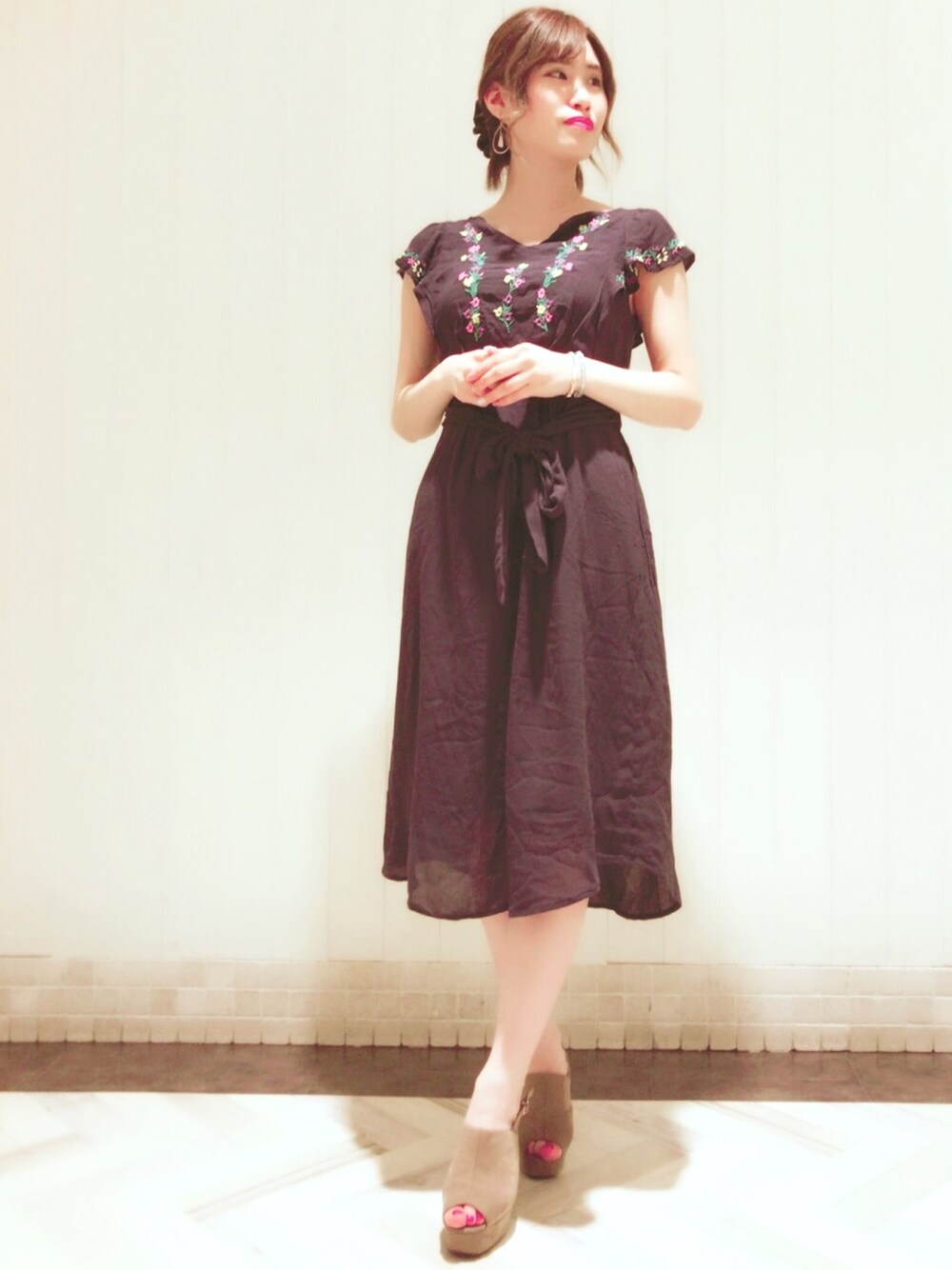 大人っぽく見えるワンピース♪ 刺繍が今年っぽい1枚💓