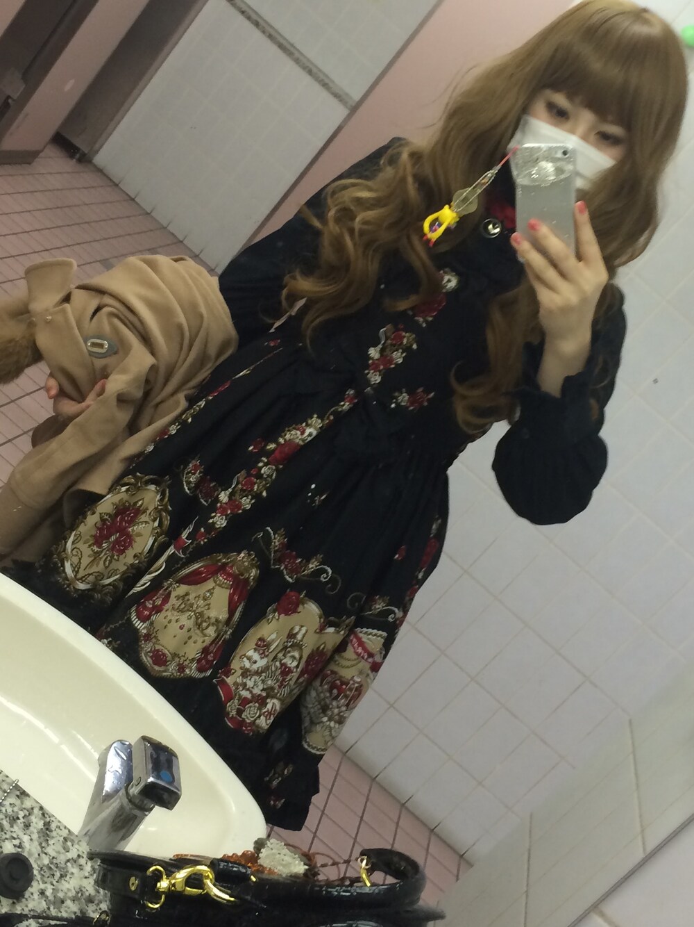ずいぶん前のコーデ。 最近着る機会がないからこの写真で。 ALICE and the PIRATES いばらうさぎのペイサージュ柄JSK MIHO MATSUDA 木底靴(見えないけど)