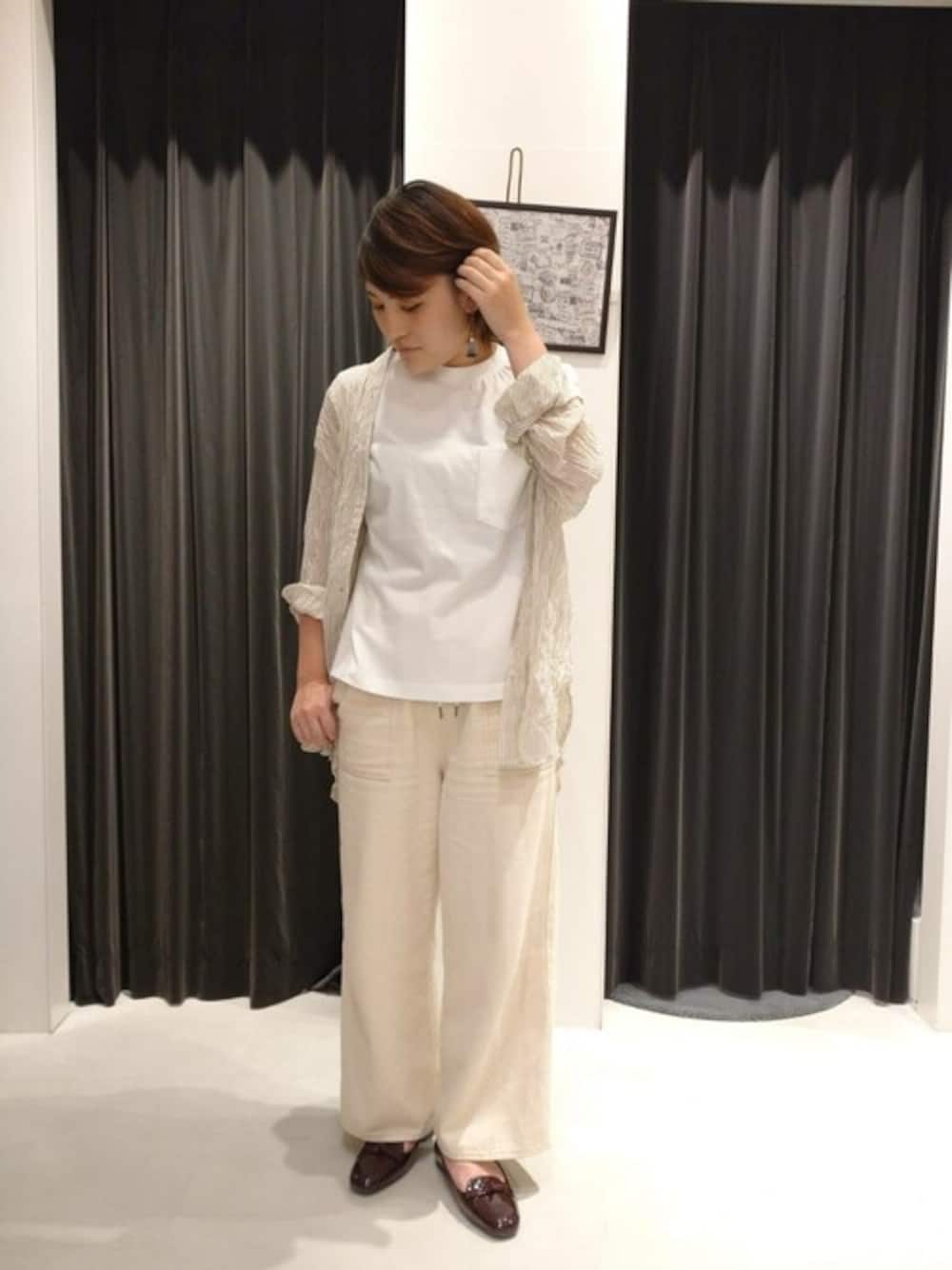おしゃれ度UPのワントーンコーデです☆ ホワイトデニムはオールシーズン使える優秀アイテムです! シャツは肩にかけたり巻いてみたりと着まわし抜群です♪ 白のワントーンコーデは比較的取り入れやすいので、ぜひ試してみて下さい☆
